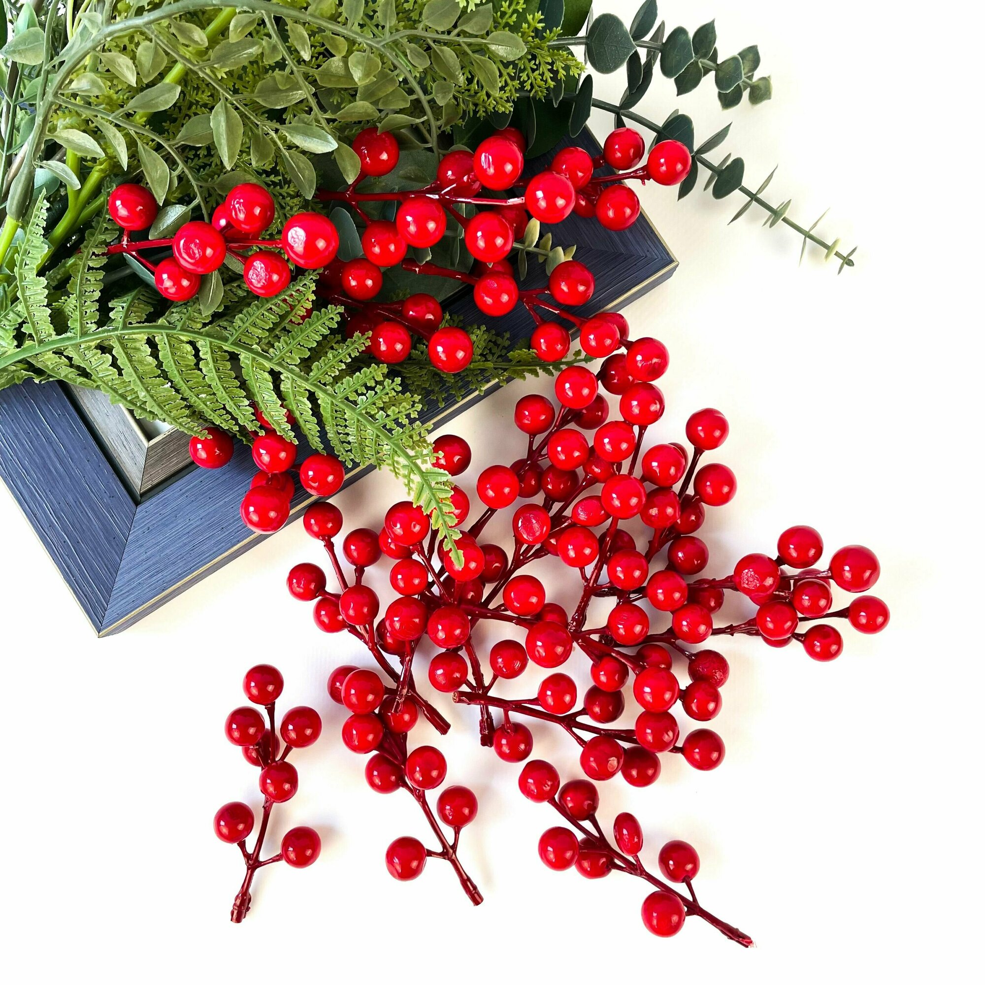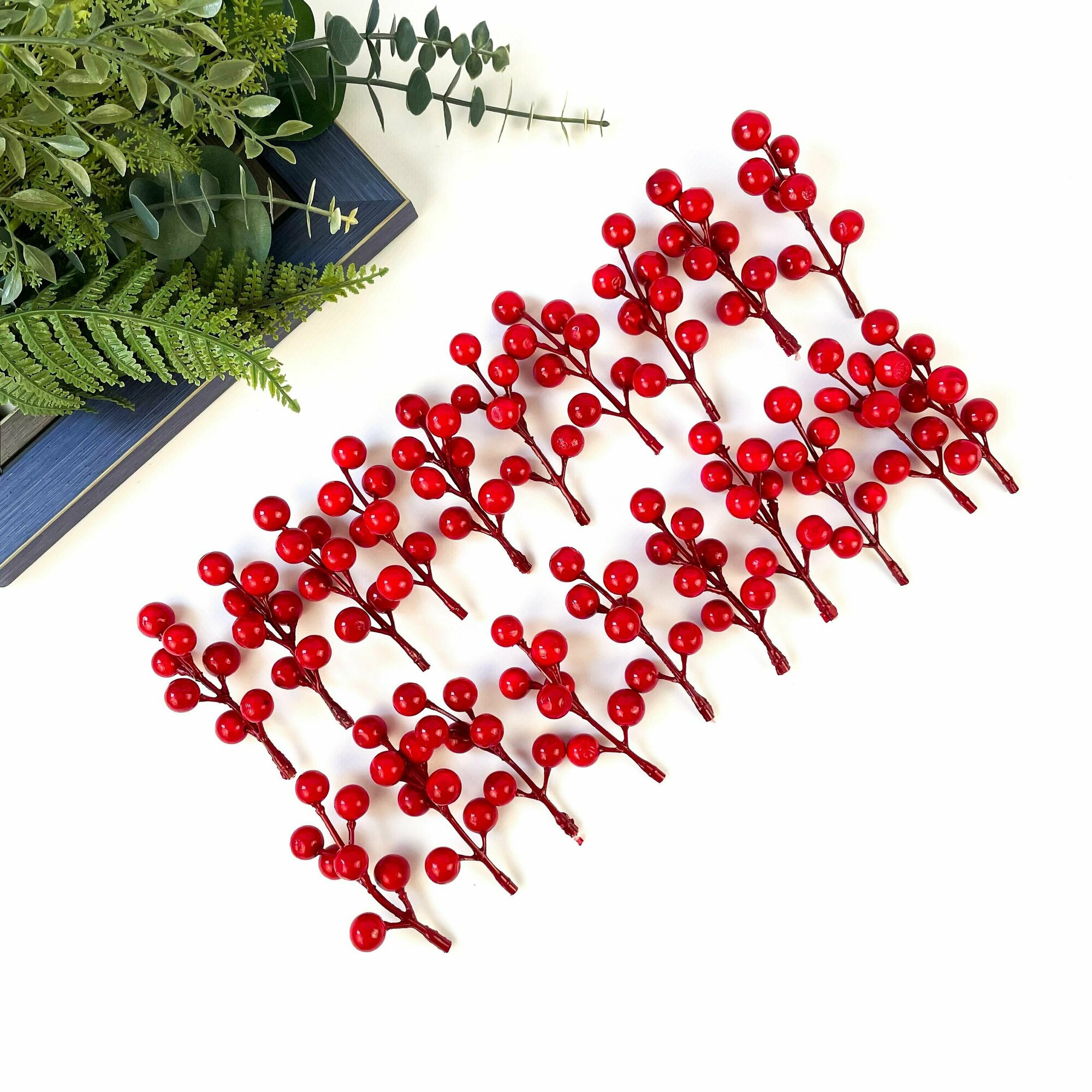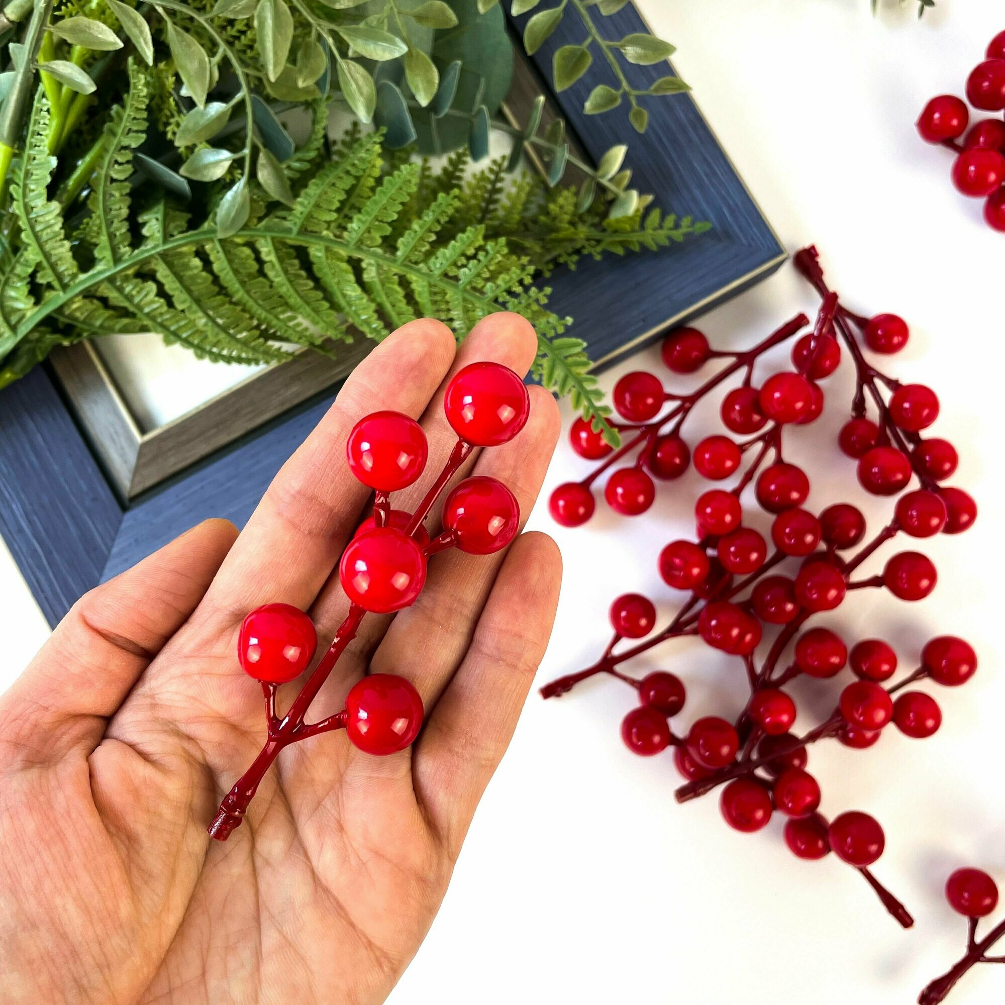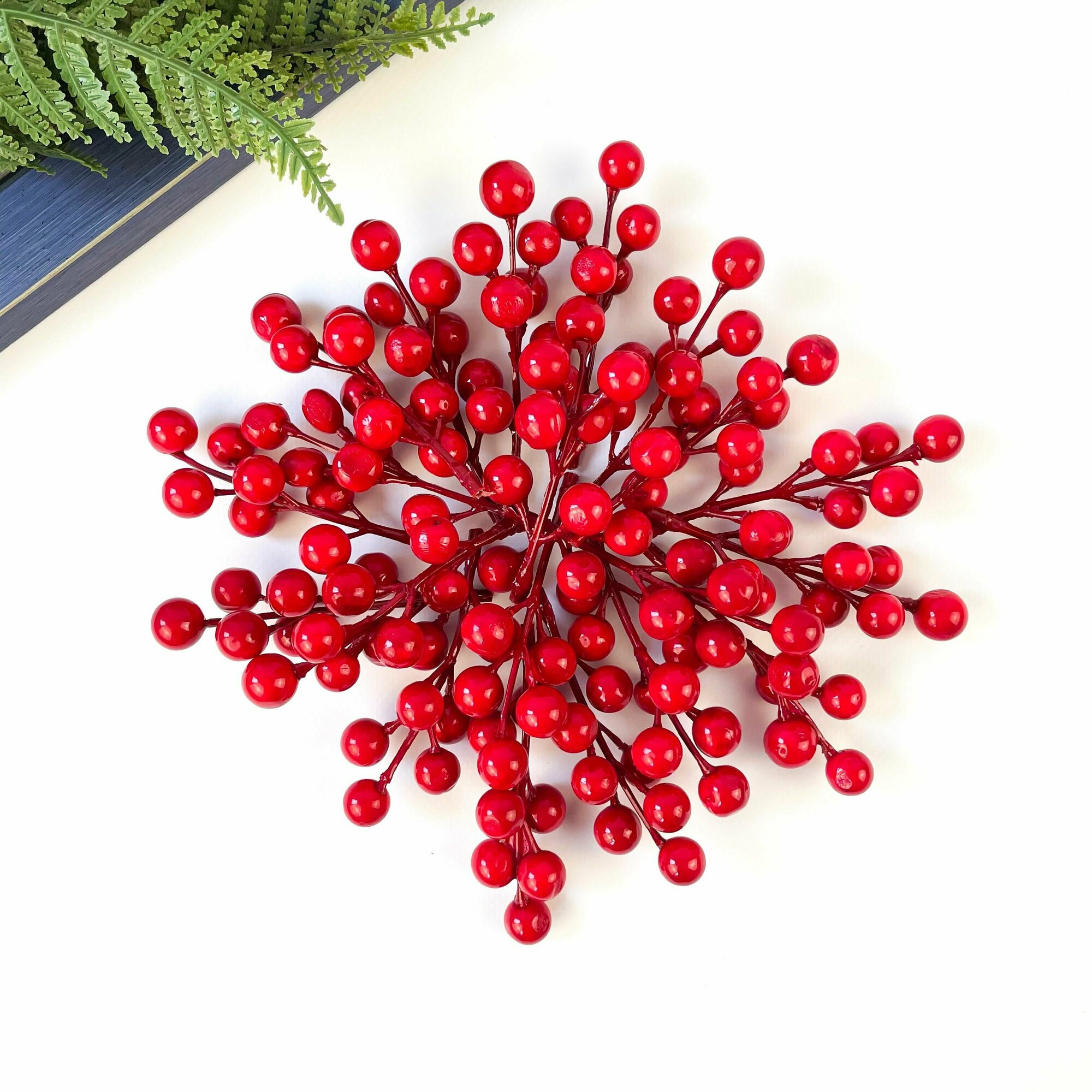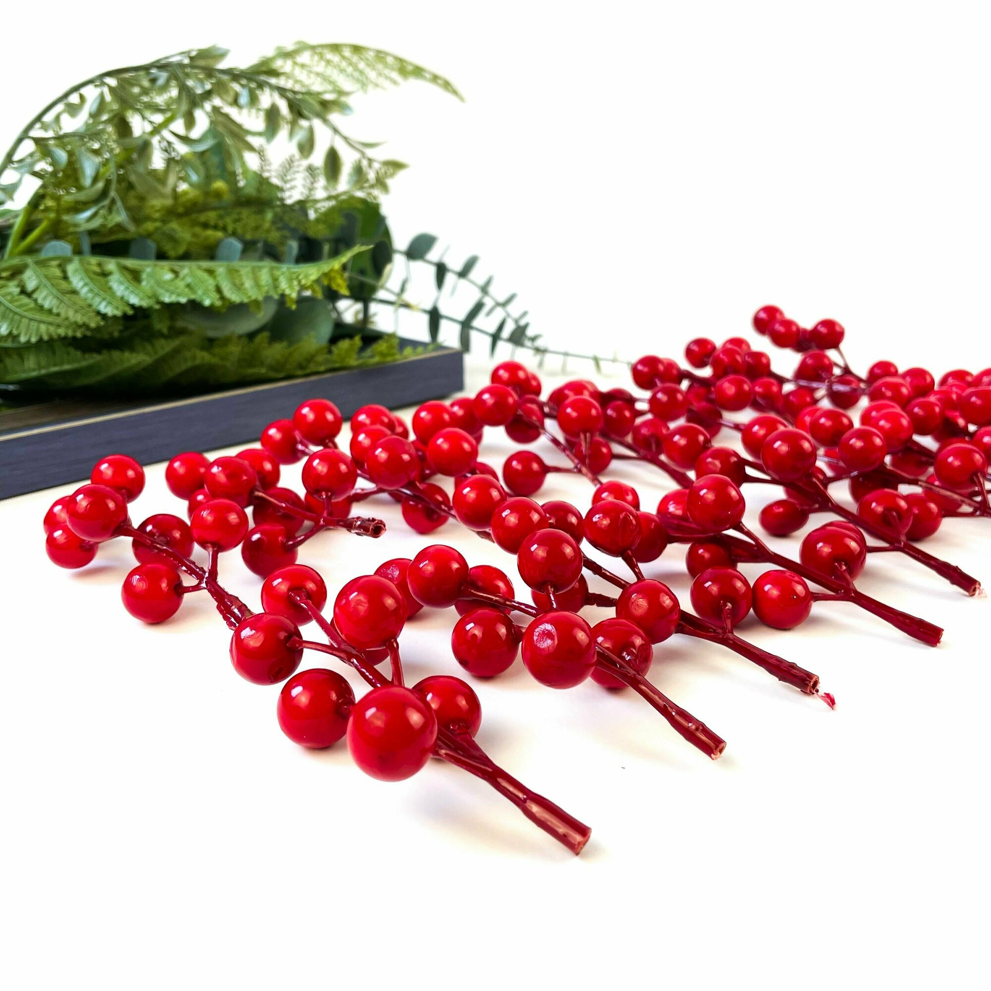Купить Ягоды красные искусственные, на ветке 5 ягод 10-13 мм, набор 20 шт.