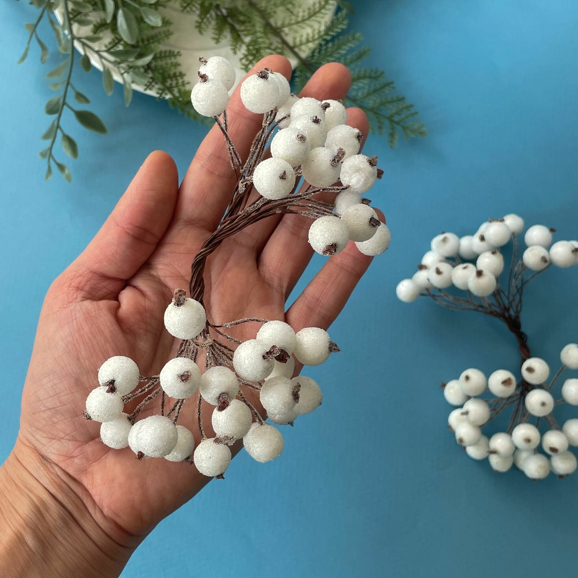 Купить Ягоды Сахарные декоративные, Белые, набор 2 пучка (примерно 80 ягодок)
