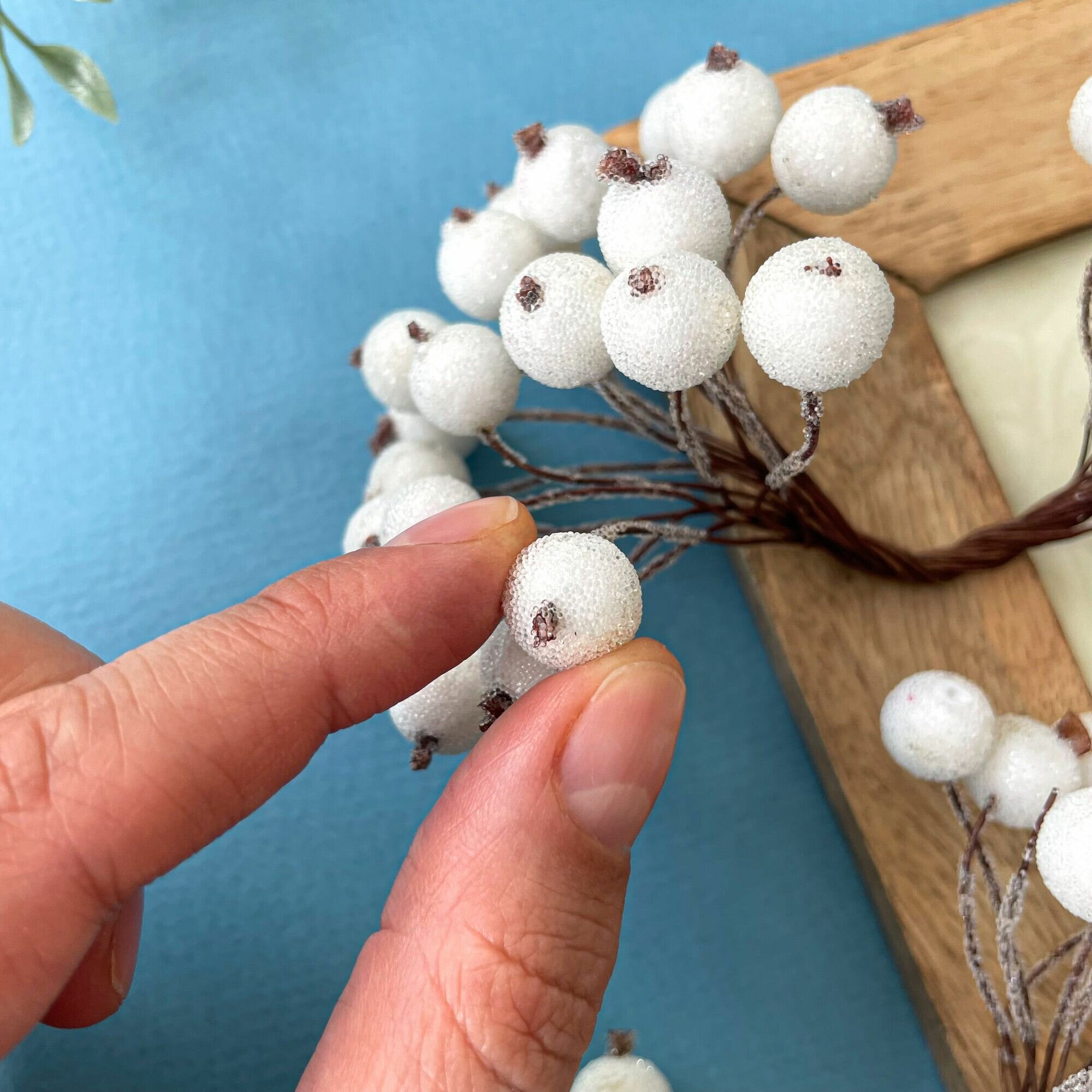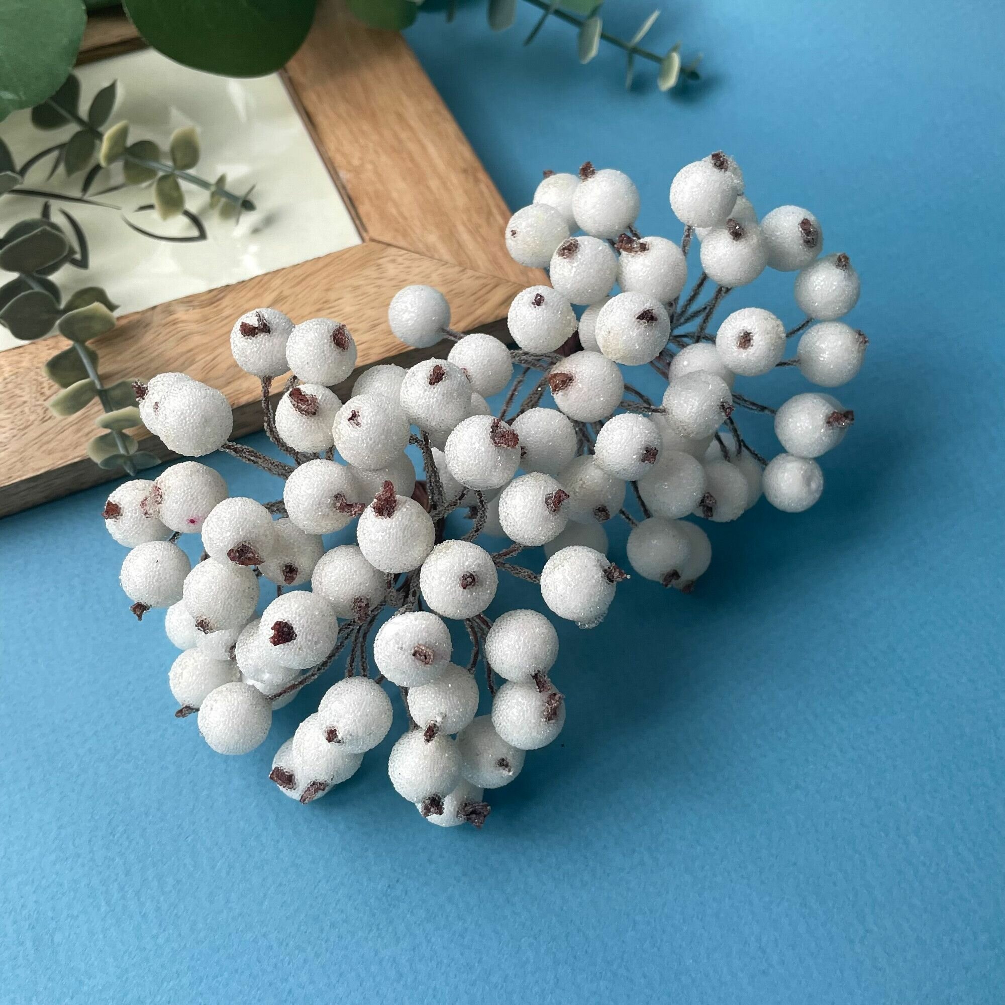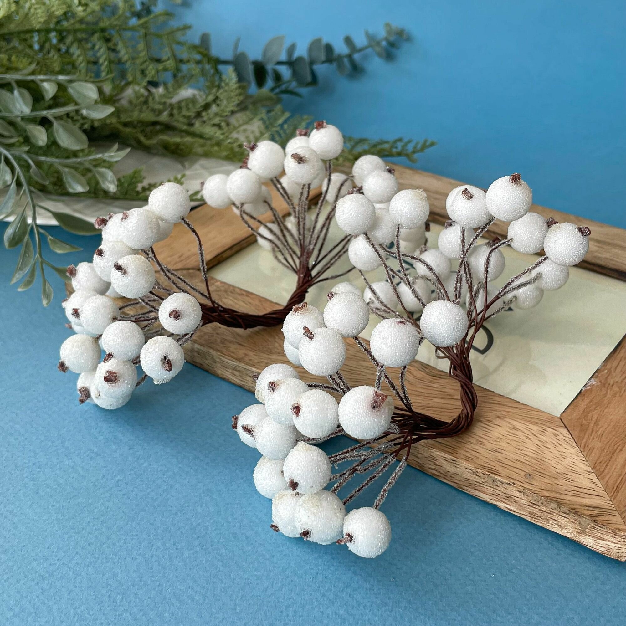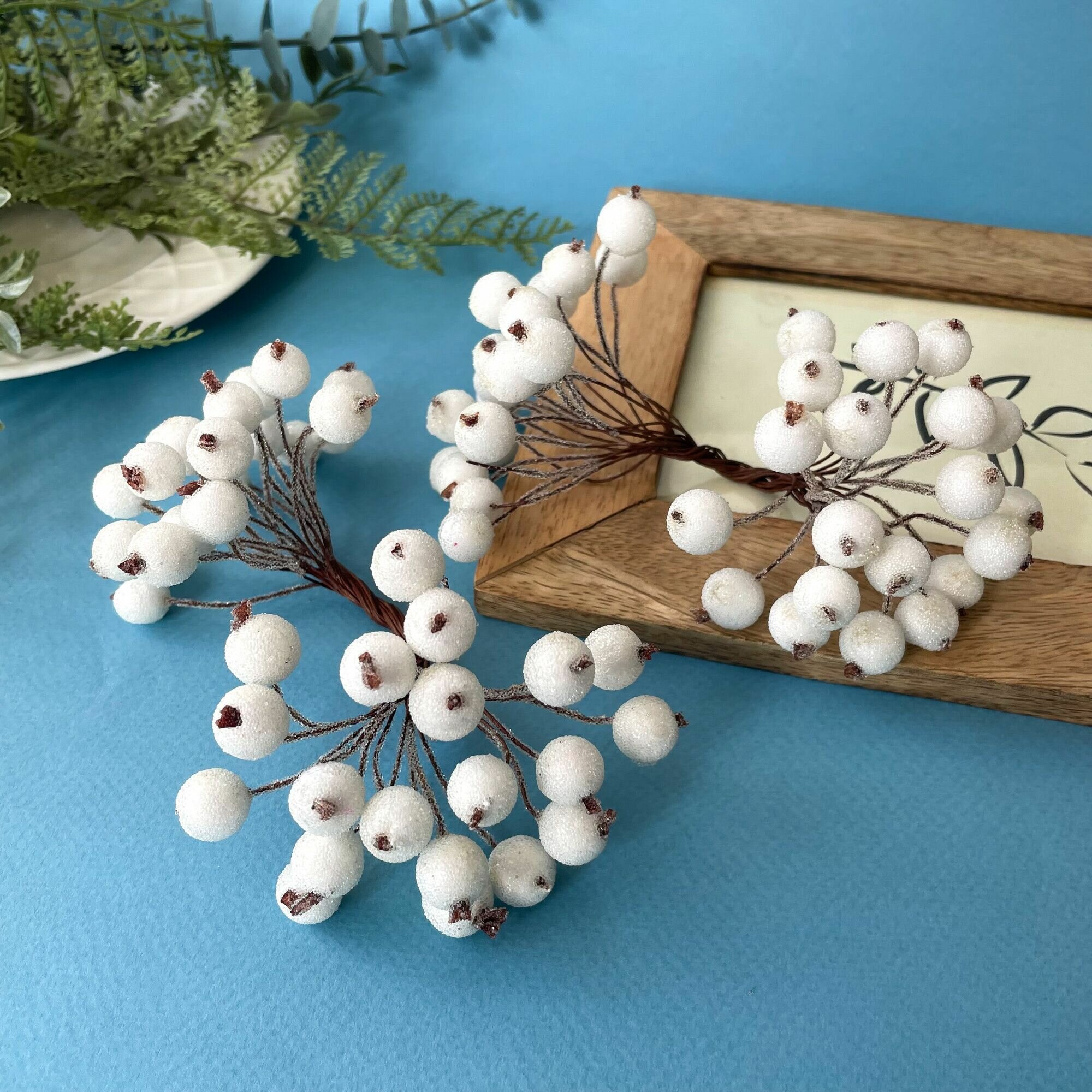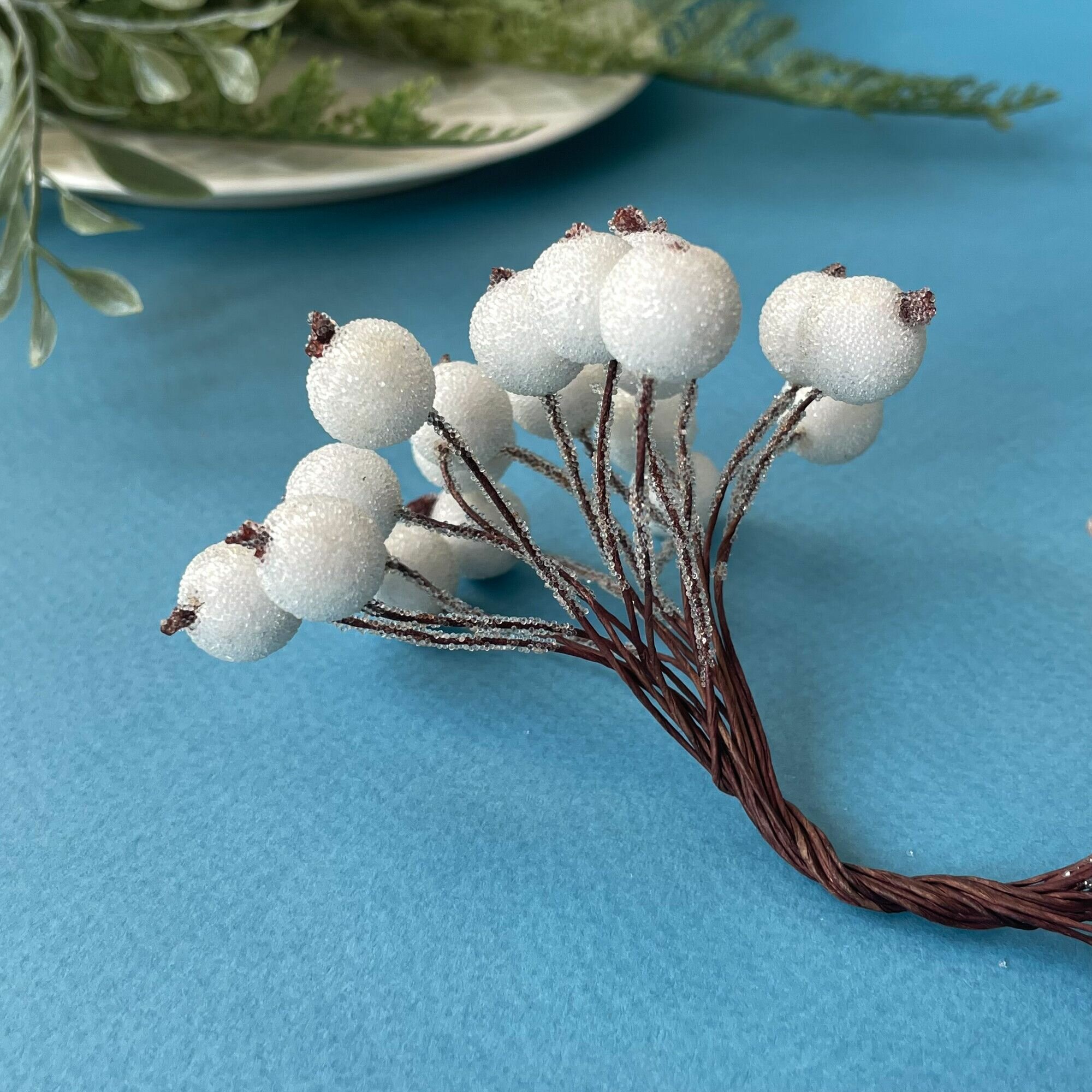 Ягоды искусственные на проволоке, Белые, ветка 21,5 см, ягоды 7-10 мм, набор 10 шт.