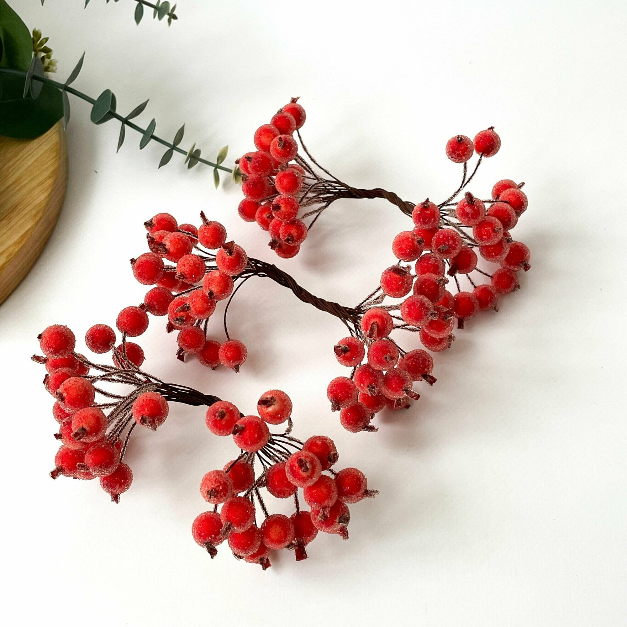 Купить Ягоды Сахарные декоративные, Красные, набор 3 пучка (примерно 120 ягодок)