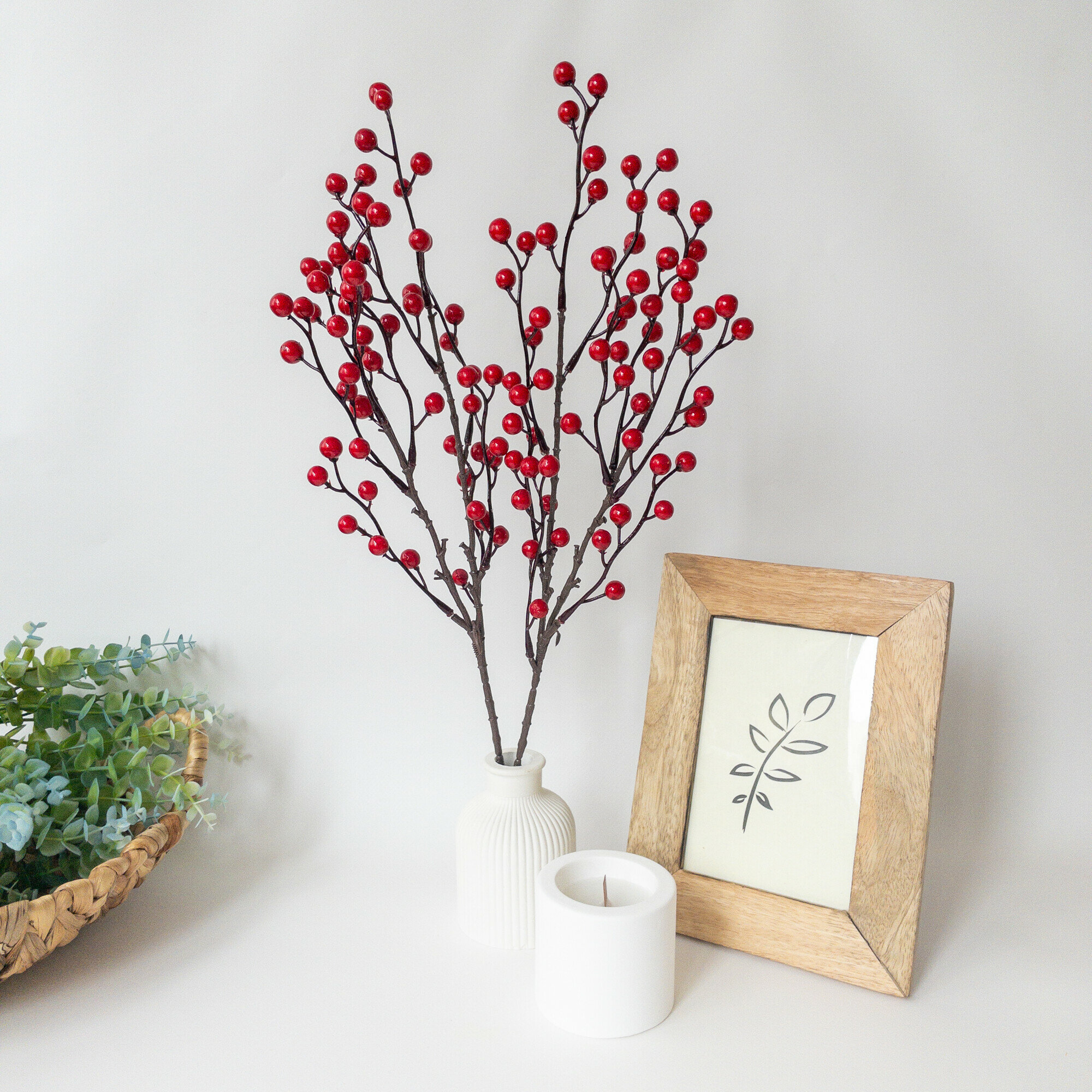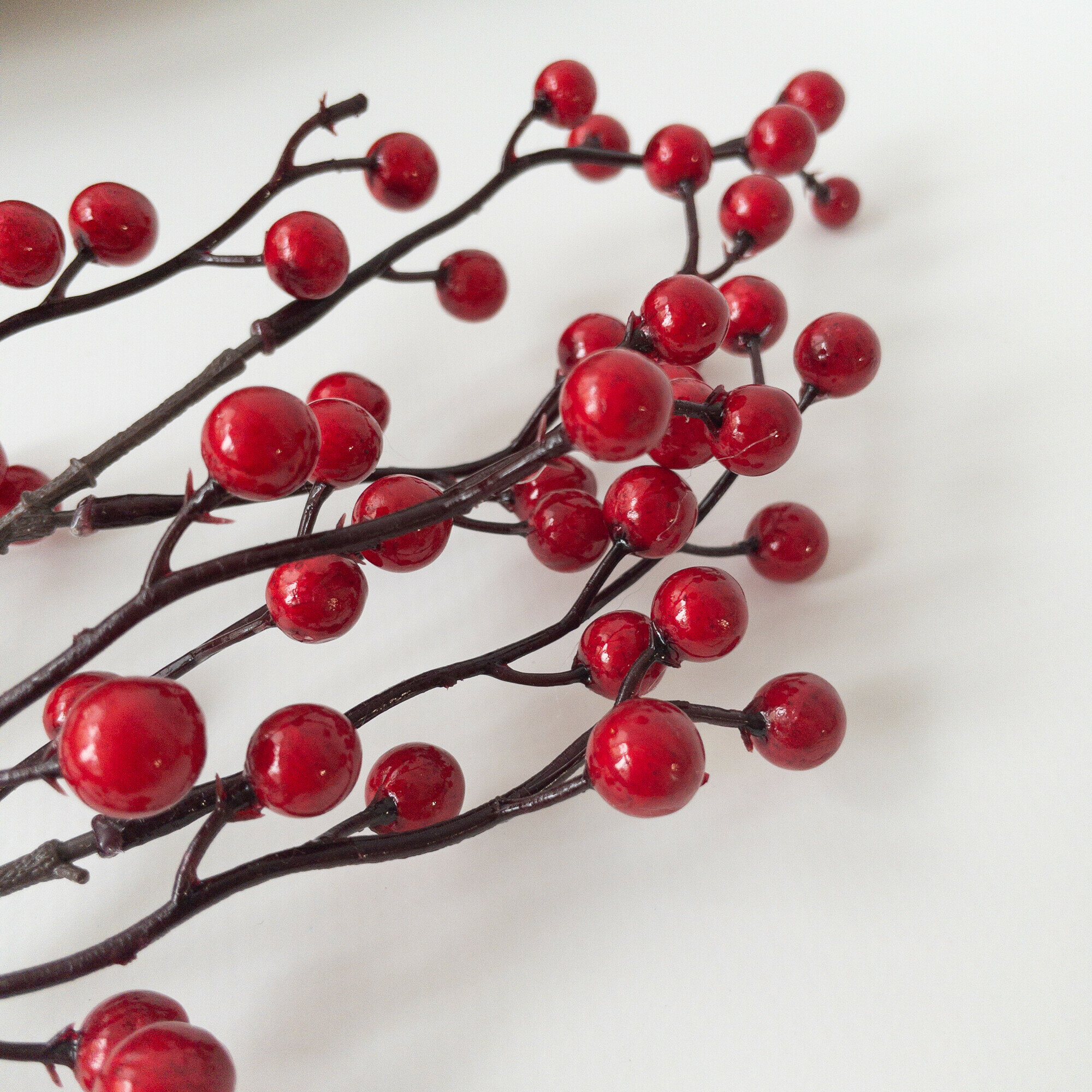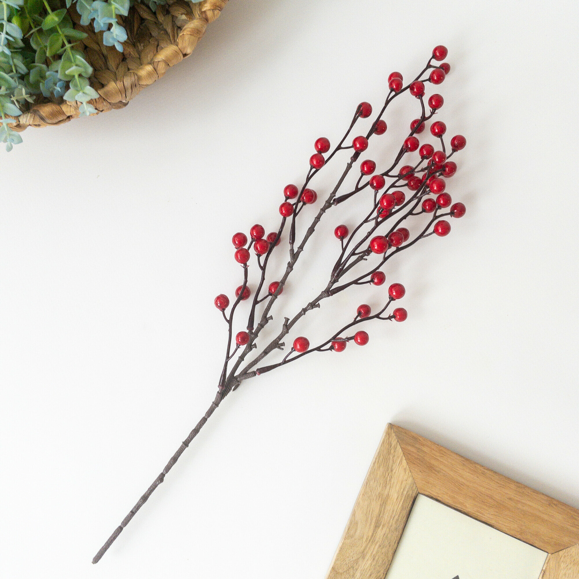 Купить Ягоды на ветке, декоративные, Красные, высота 43 см, ягоды 10-14 мм, набор 2 шт.
