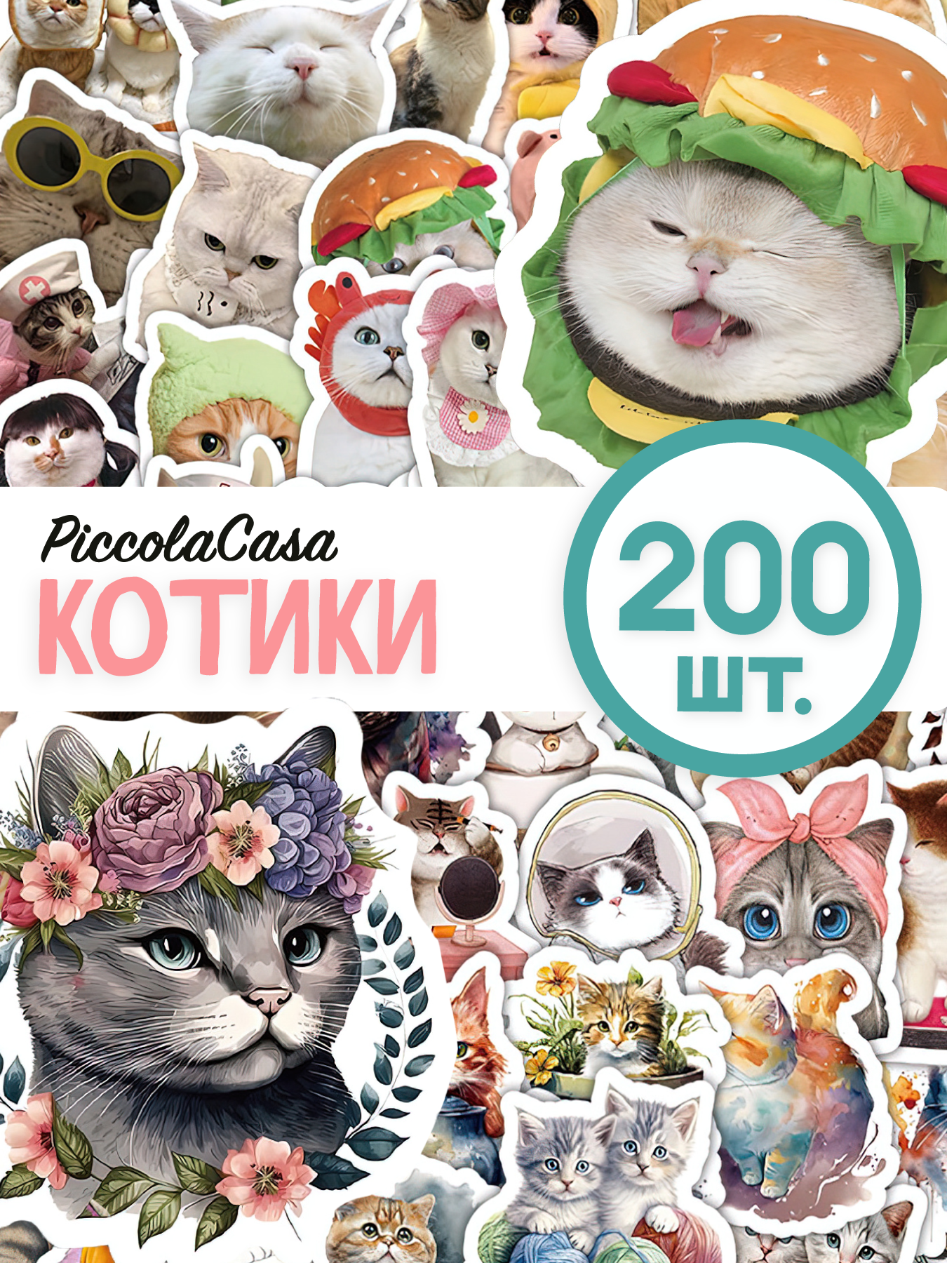 Наклейки котики 200 шт интересное: