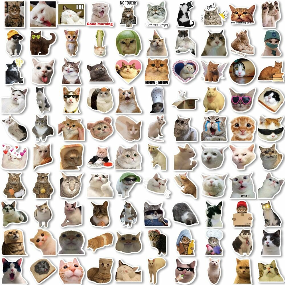 Купить Набор виниловых стикеров на ноутбук и телефон, наклейки мемы для украшений и творчества - Коты Мем - LOL - 100 шт