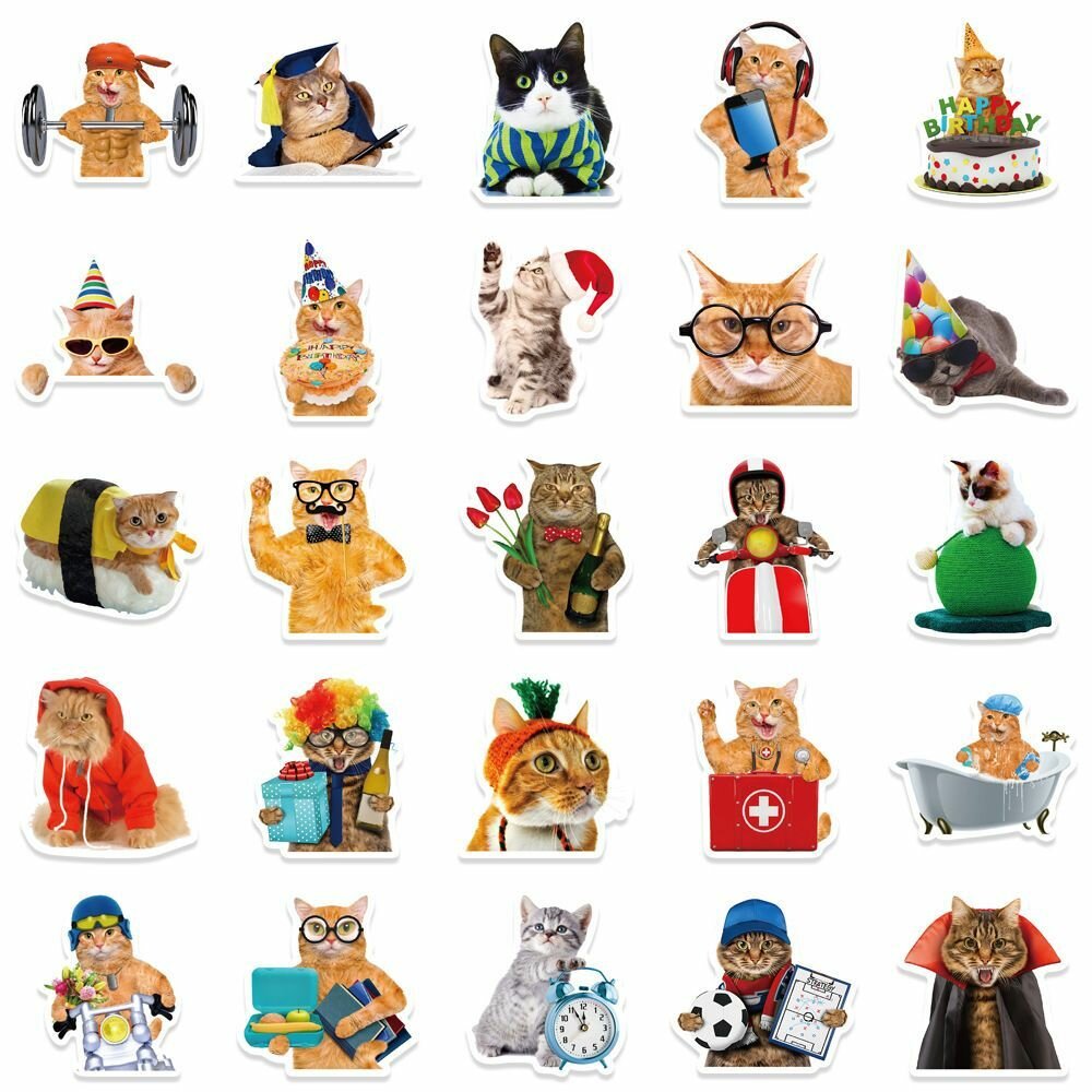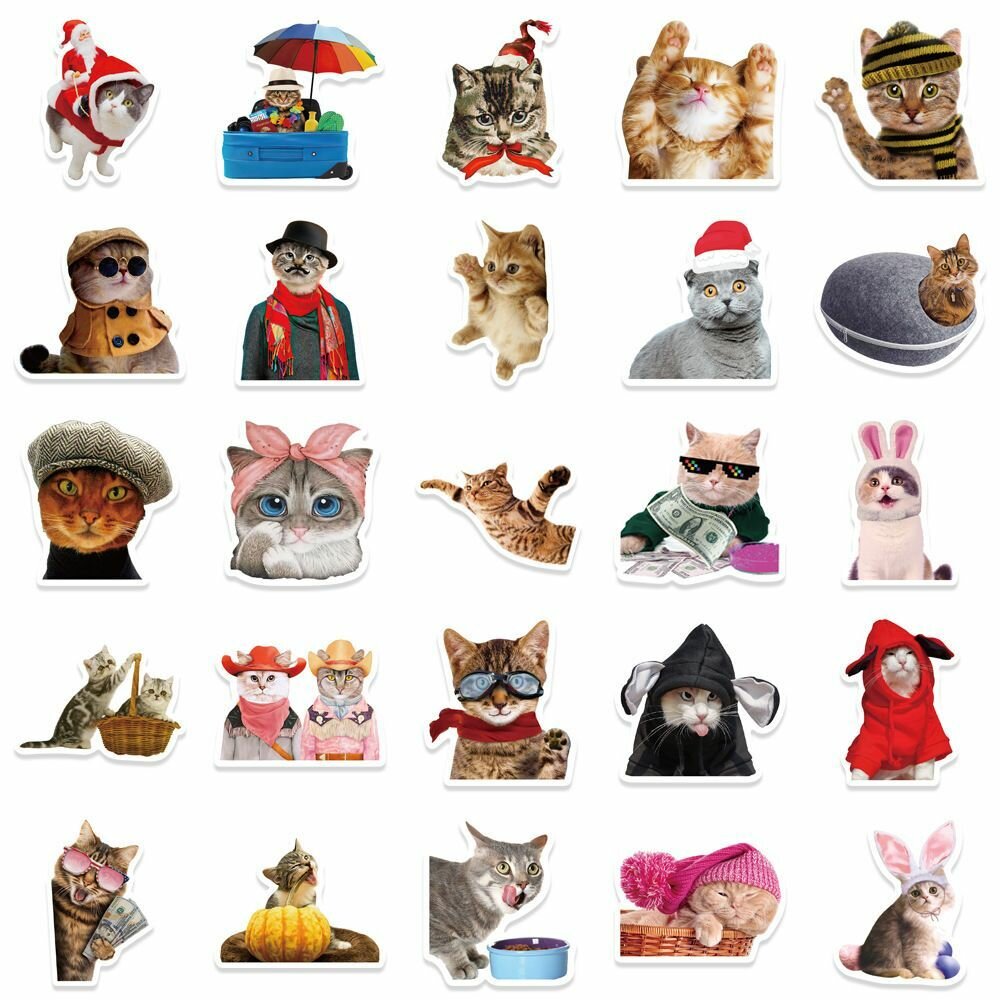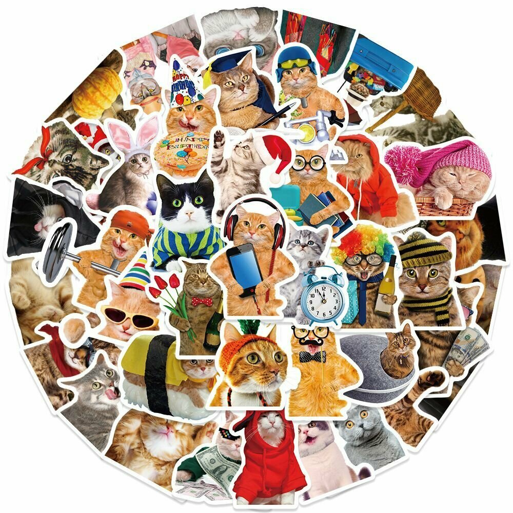 Купить Набор виниловых стикеров на ноутбук и телефон, наклейки мемы для украшений и творчества - Коты Мем - c клоуном - 50 шт