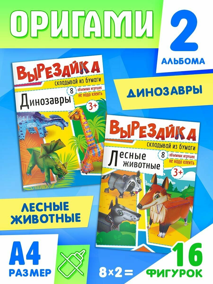 Купить Набор оригами для поделок из цветной бумаги, Вырезайка А4, Динозавры и Лесные животные, комплект 2 альбома