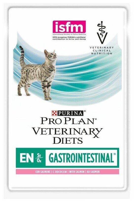 Влажный корм Pro Plan Veterinary Diets EN St/Ox для взрослых кошек и котят для снижения проявлений острого нарушения всасывающей функции кишечника, с лососем, Пауч, 10x85 г = 850 г
