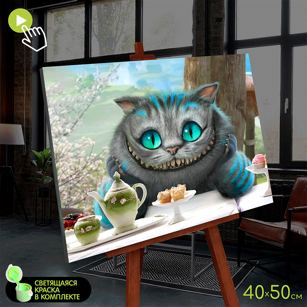 СохранитьКартина по номерам со светящейся краской (40х50) Чеширский кот (32 цвета) FHR0581 интересное: