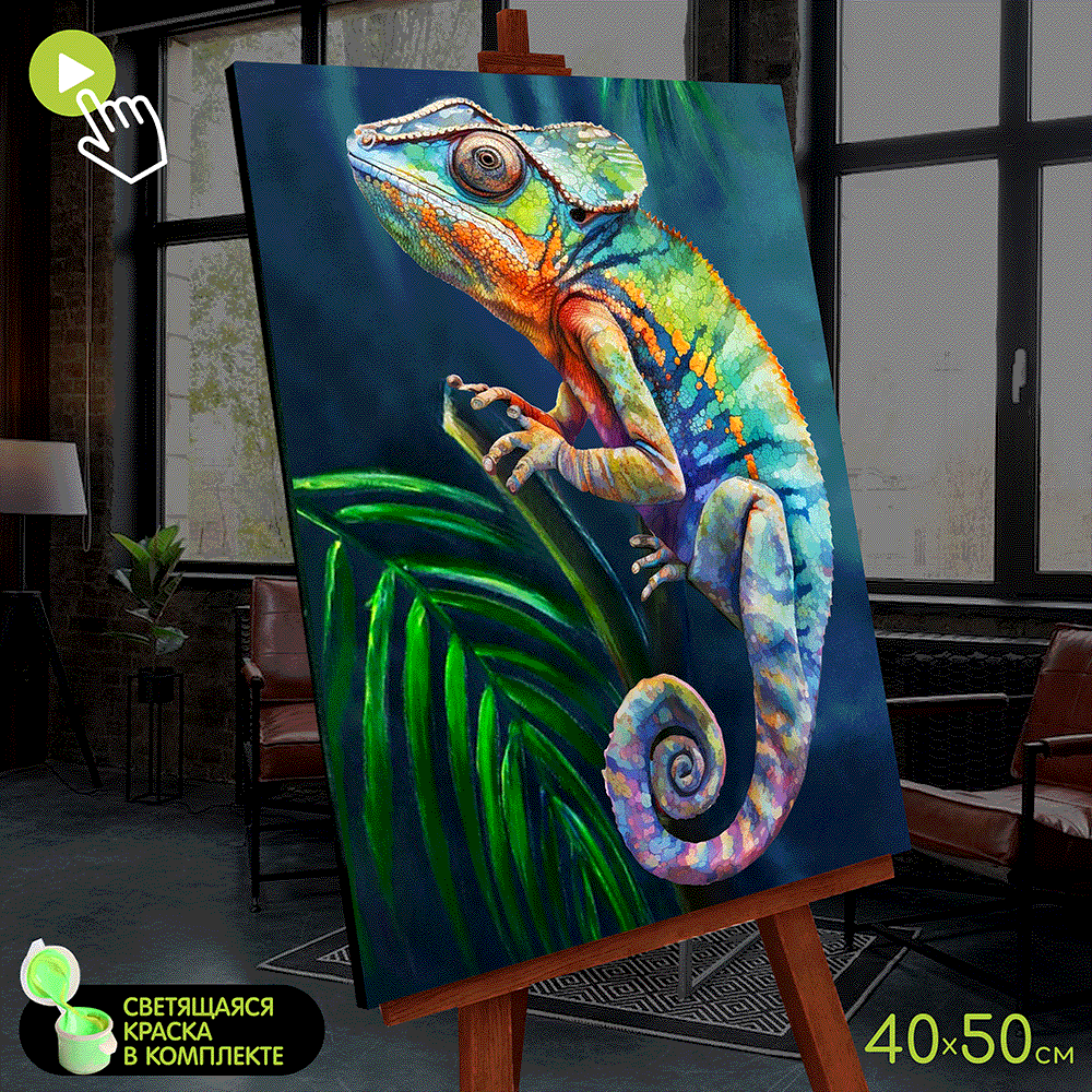 Купить Картина по номерам со светящейся краской (40х50) Хамелеон (26 цветов) FHR0578