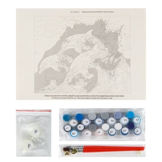 Купить Картина по номерам со светящейся краской (40х50) Дельфины в море (22 цвета) FHR0570