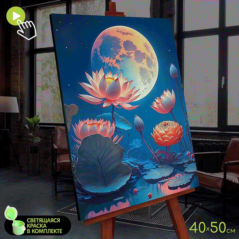 СохранитьКартина по номерам со светящейся краской (40х50) Лунный лотос (22 цвета) FHR0587 интересное: