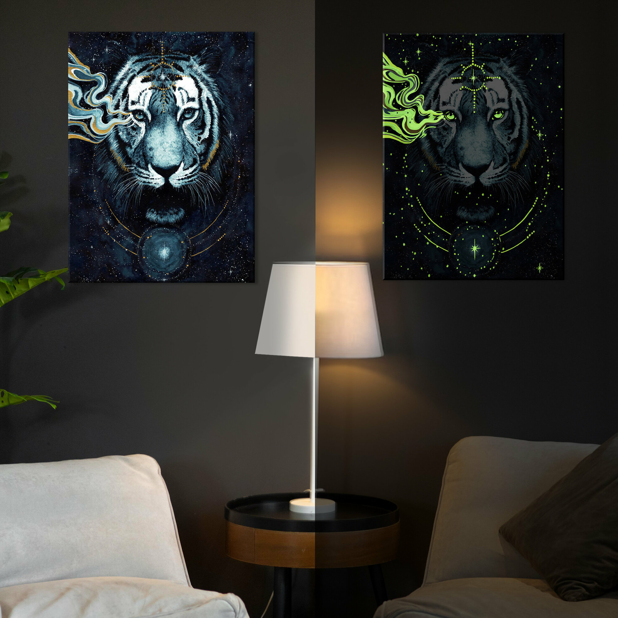 Купить Картина по номерам со светящейся краской (40х50) Тигр на чёрном фоне (9 цветов) FHR0585