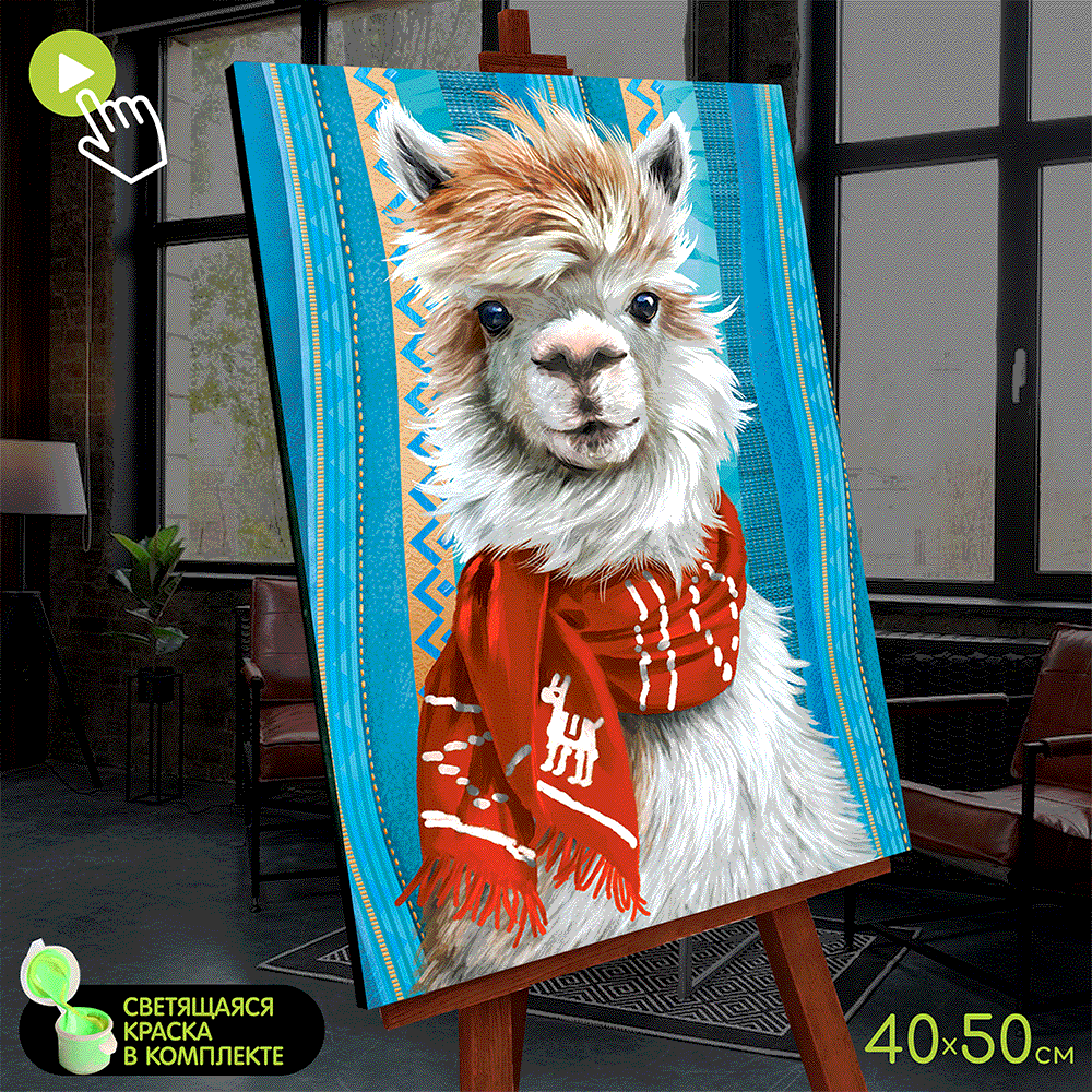 Купить Картина по номерам со светящейся краской (40х50) Лама в шарфе (28 цветов) FHR0592