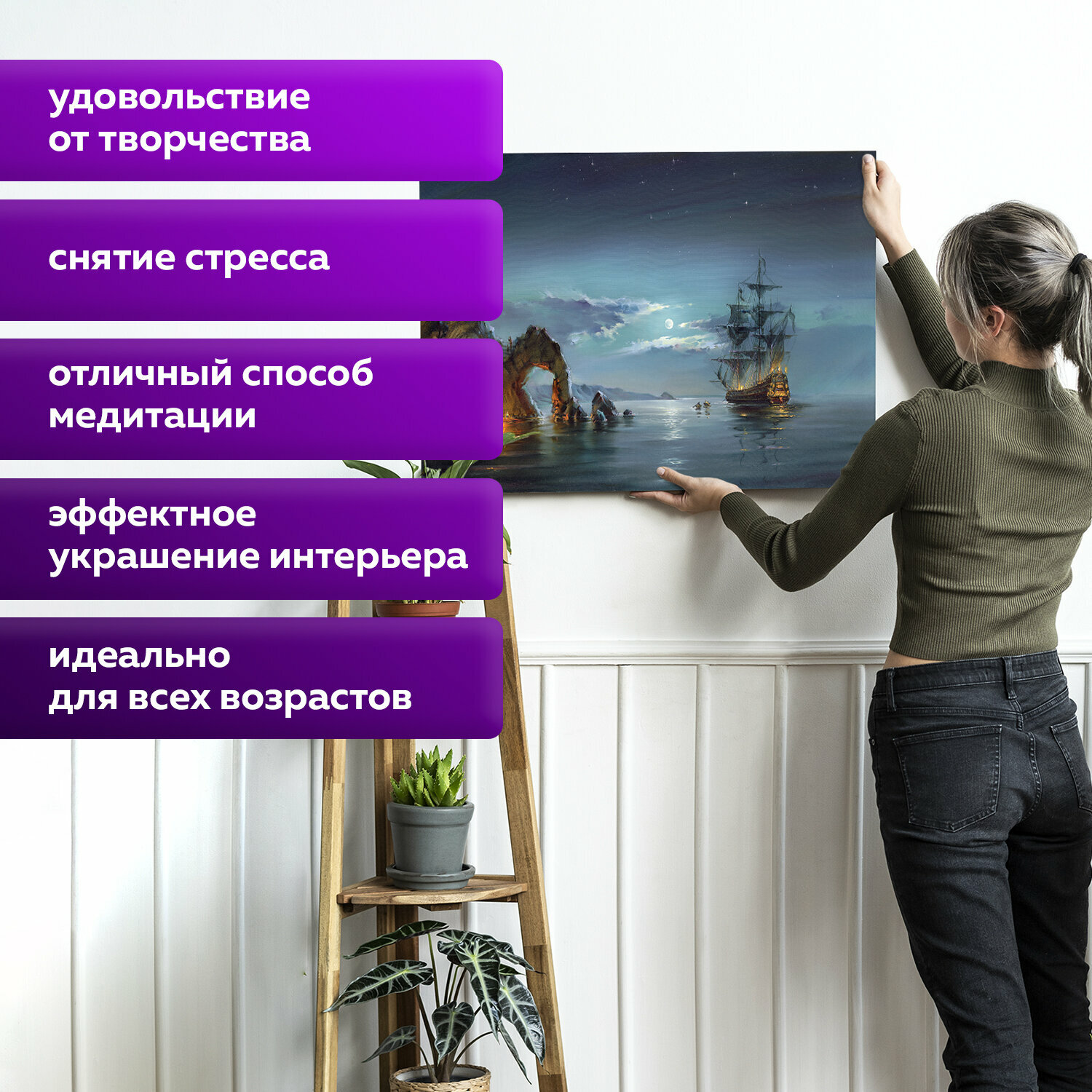 Картина по номерам на холсте подрамнике 40х50 море пейзаж Лунная ночь, набор для творчества с акриловыми красками и кистями, Остров Сокровищ, 663282