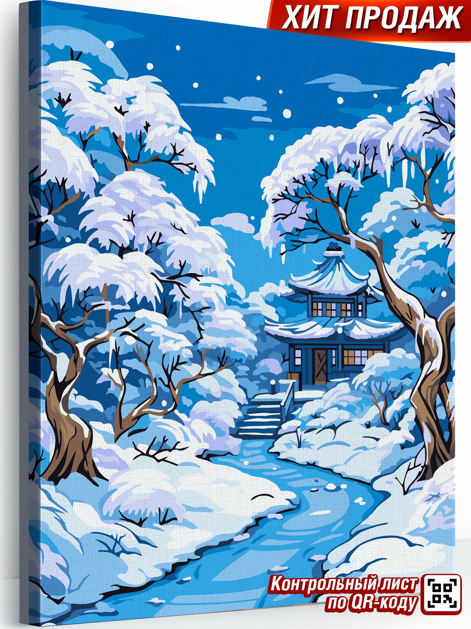 Купить Картина по номерам на холсте 40х50 см "Зимний японский сад" деревянный подрамник