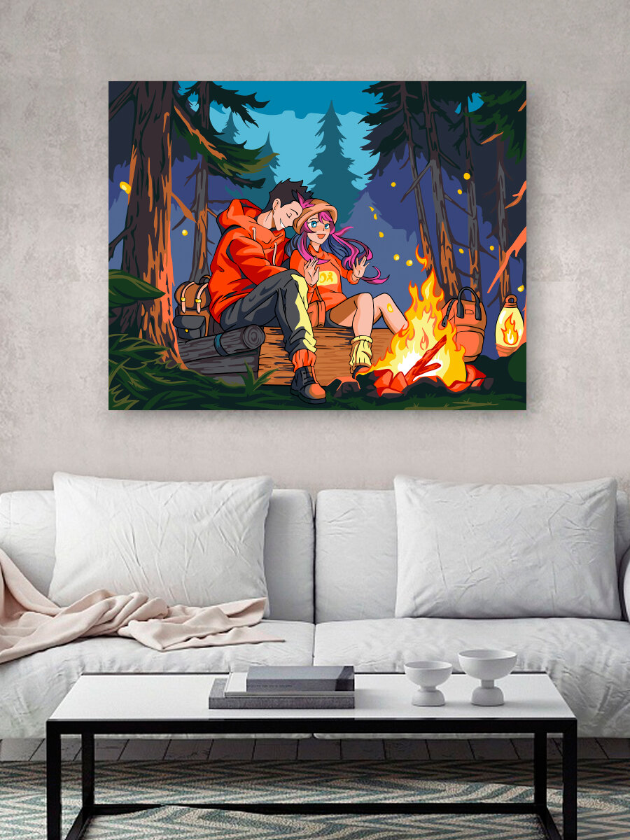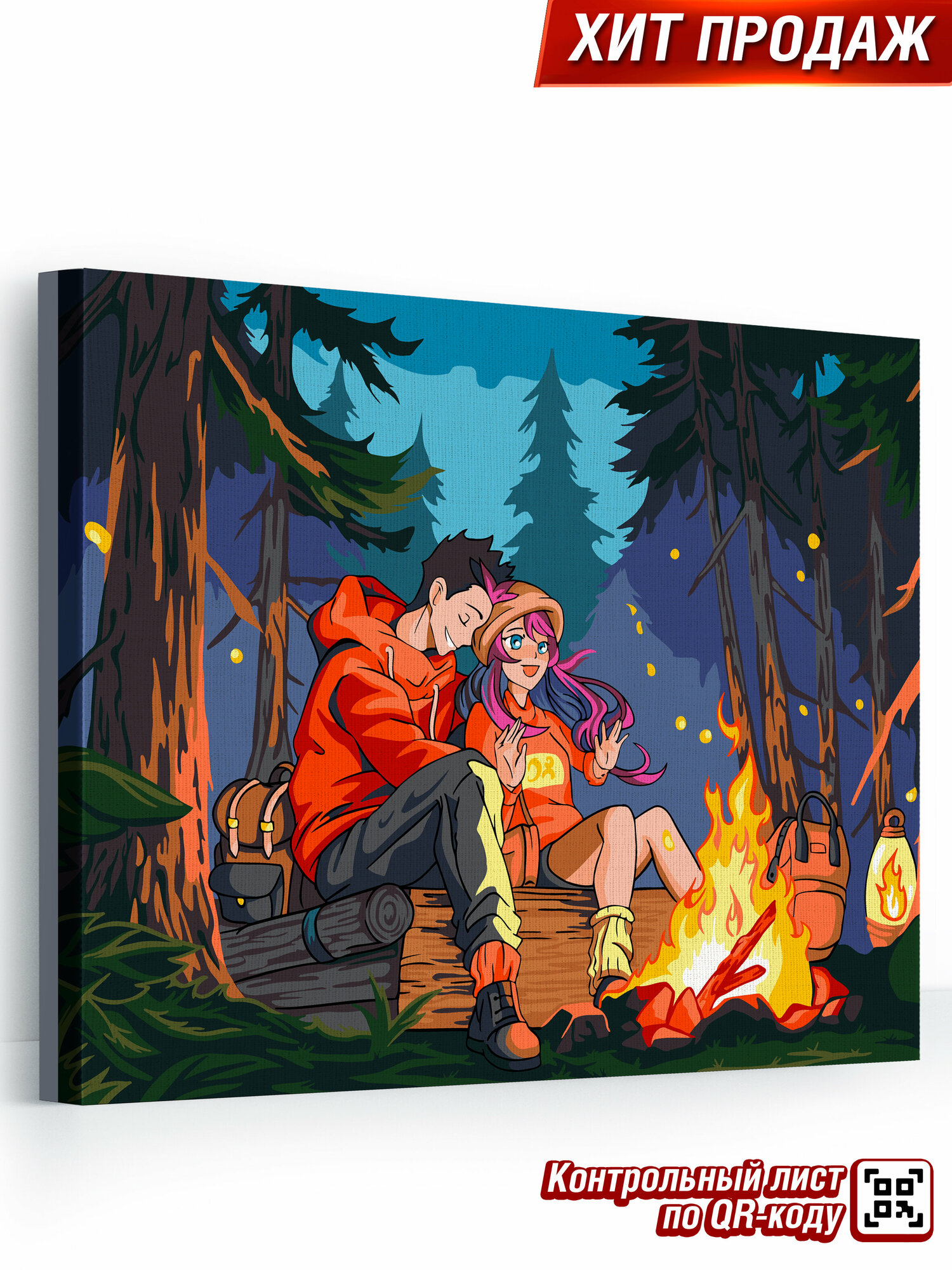 Купить Картина по номерам на холсте 40х50 см "У костра" деревянный подрамник