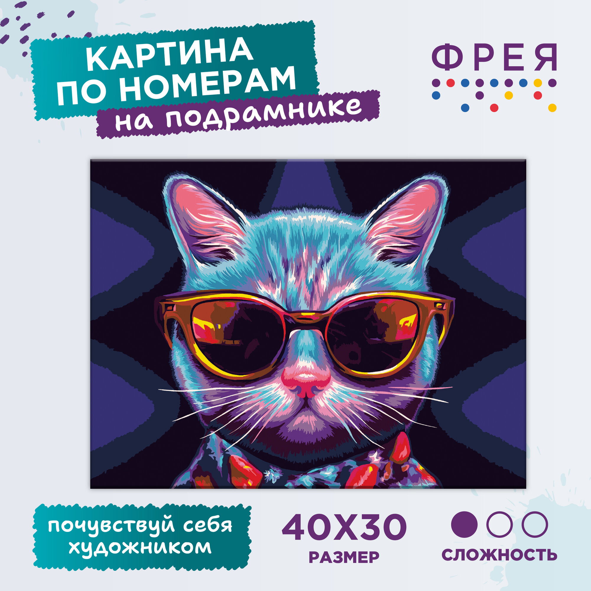 Купить Картина по номерам с холстом на подрамнике "фрея" 40 x 30 см "Неоновый кот в очках" PNB/PM-211