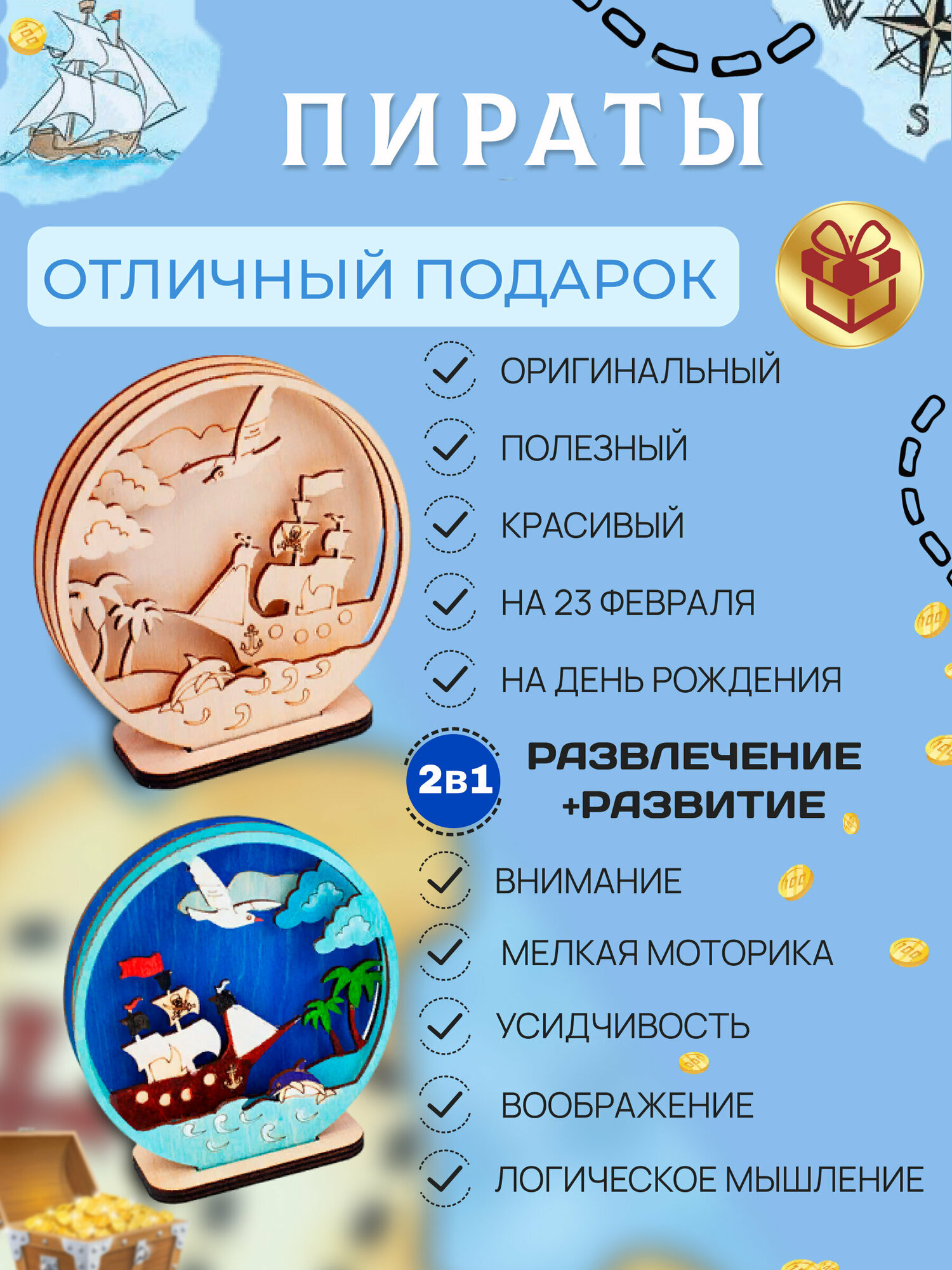 Купить Набор для творчества 3D пираты / Раскраска "Пираты" из дерева Chudosvetik / Многослойная раскраска - полный комплект