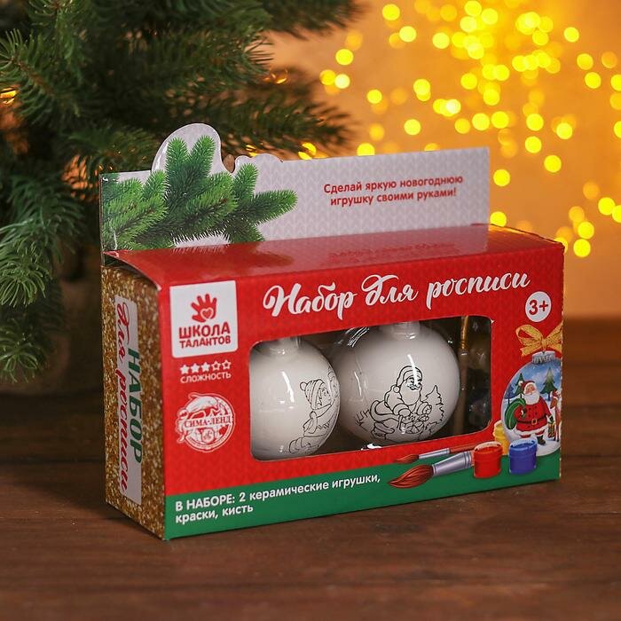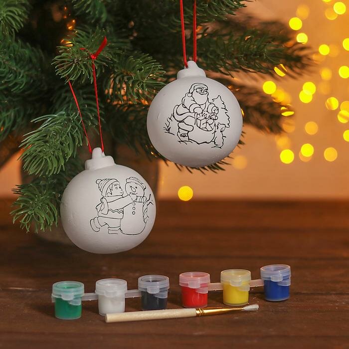 Купить Набор новогодних шаров под раскраску 2 шт. «Пара №3» с подвесом + краска 6 цв. по 2 мл, кисть