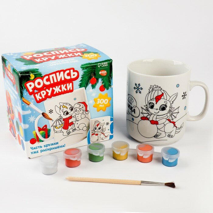 Купить Роспись кружки красками (частичное заполнение) на новый год «Праздник для дракончиков», новогодний набор для творчества