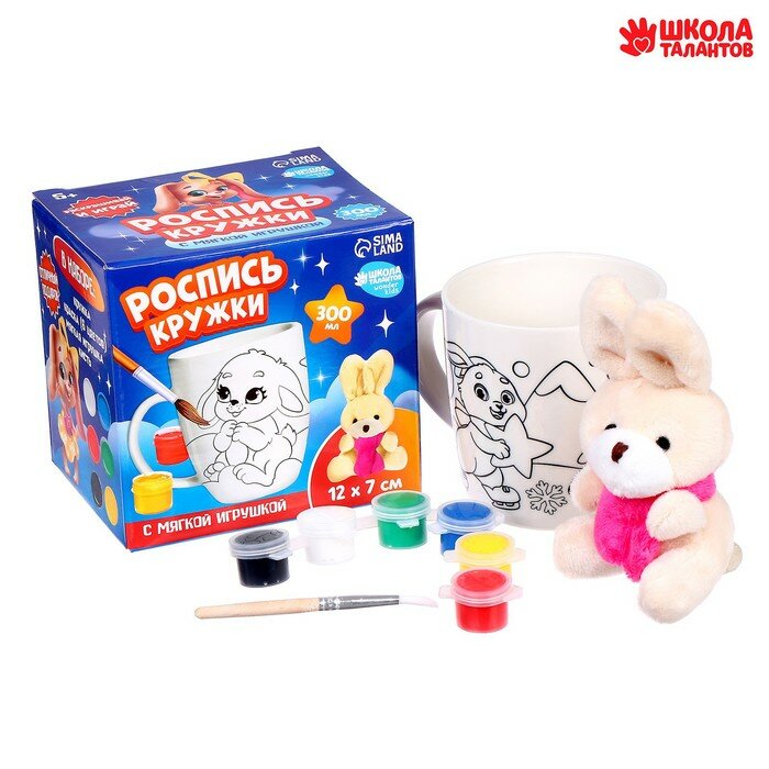 Кружка под раскраску на новый год «Зайки» с мягкой игрушкой, 300 мл, новогодний набор для творчества интересное: