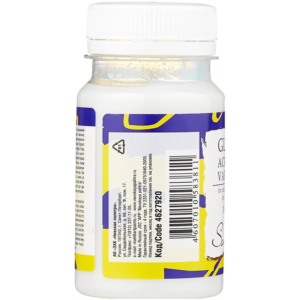 Лак акриловый Невская палитра глянцевый "Сонет", баночка 100 мл (4627920) интересное: