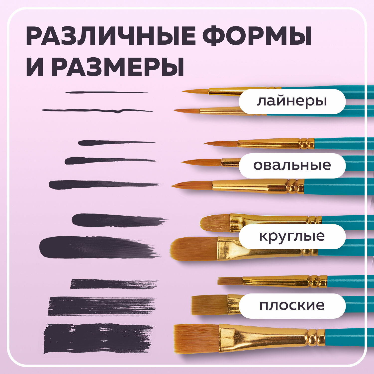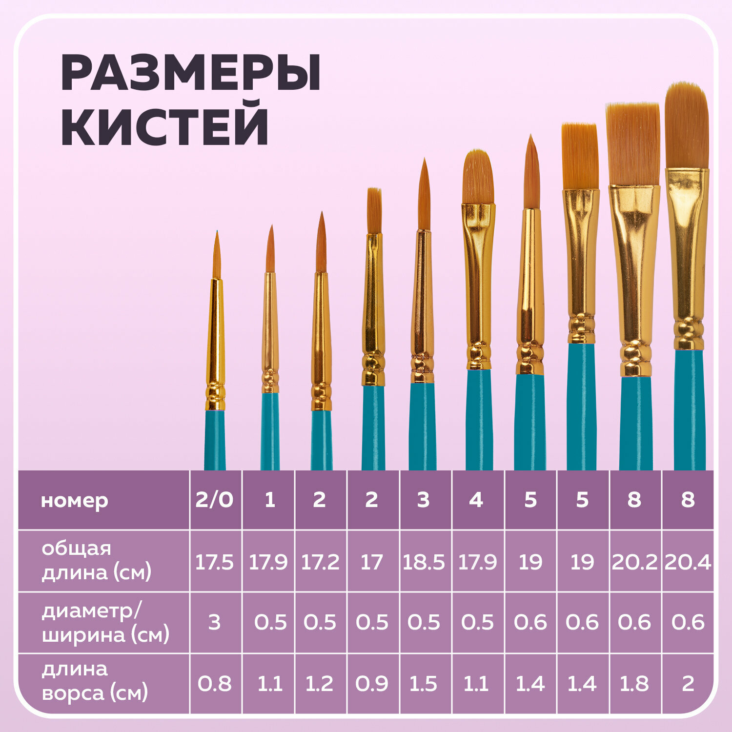 Кисти синтетика BRAUBERG, набор 10 шт., синие (Круглые; Овальные; Плоские; Лайнеры) интересное: