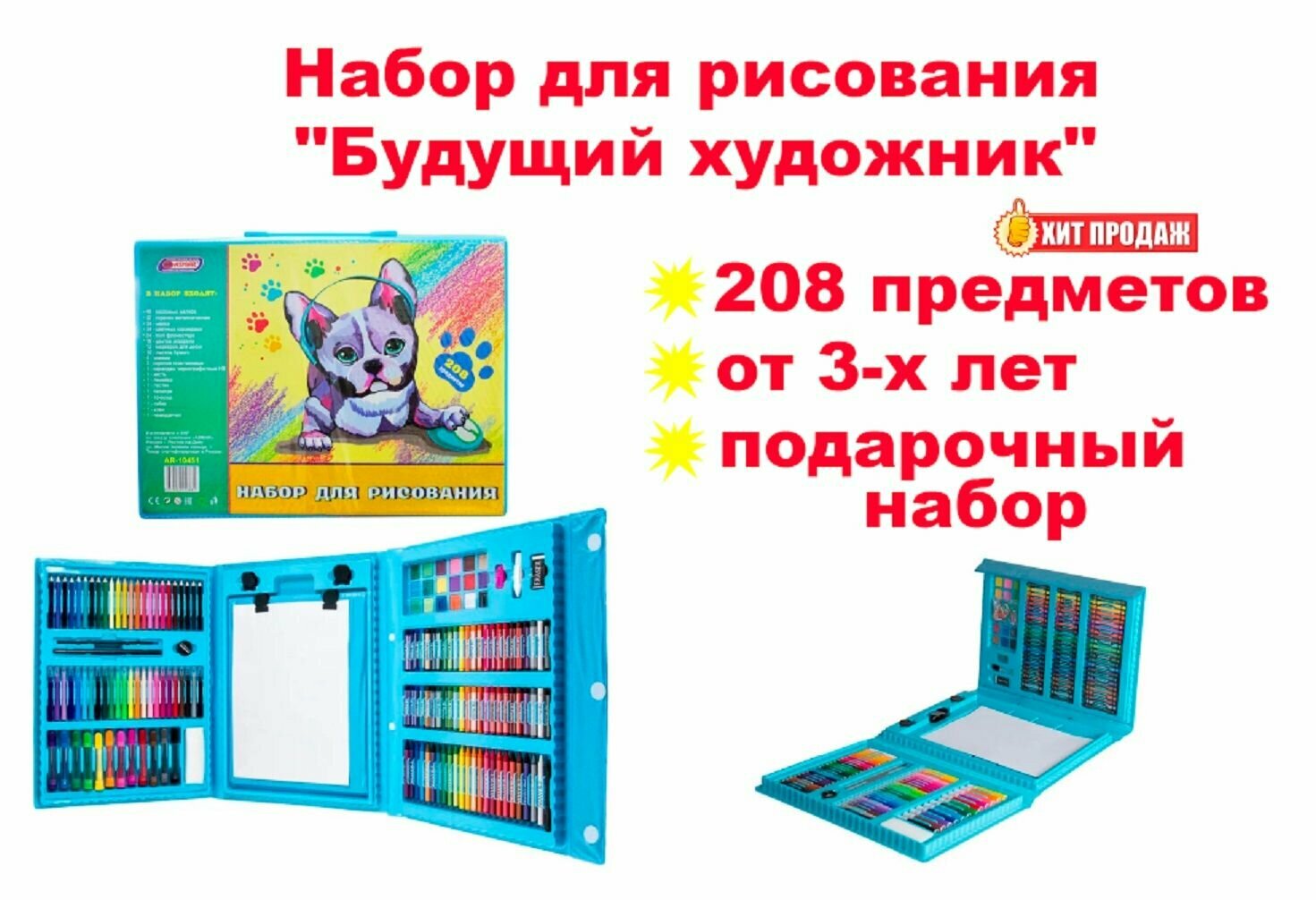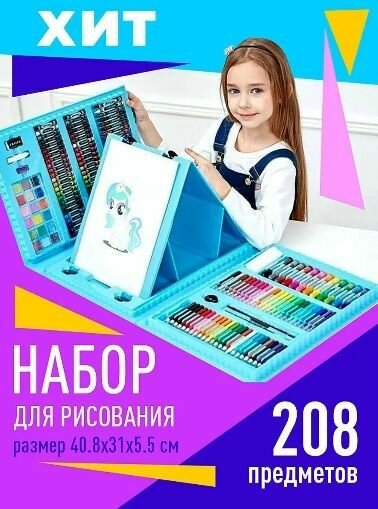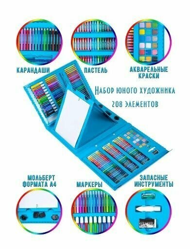 Набор для рисования 208 предметов синий интересное: