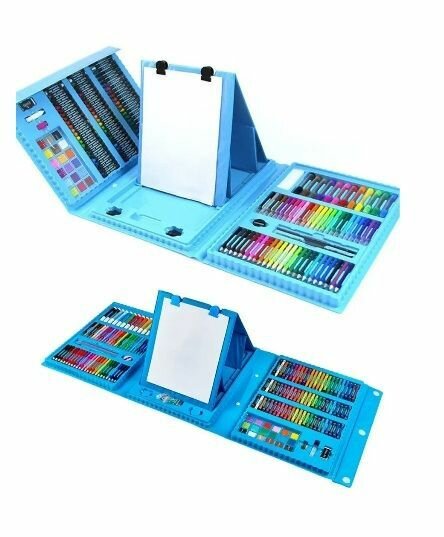 Набор для рисования с мольбертом 208 предметов (синий)