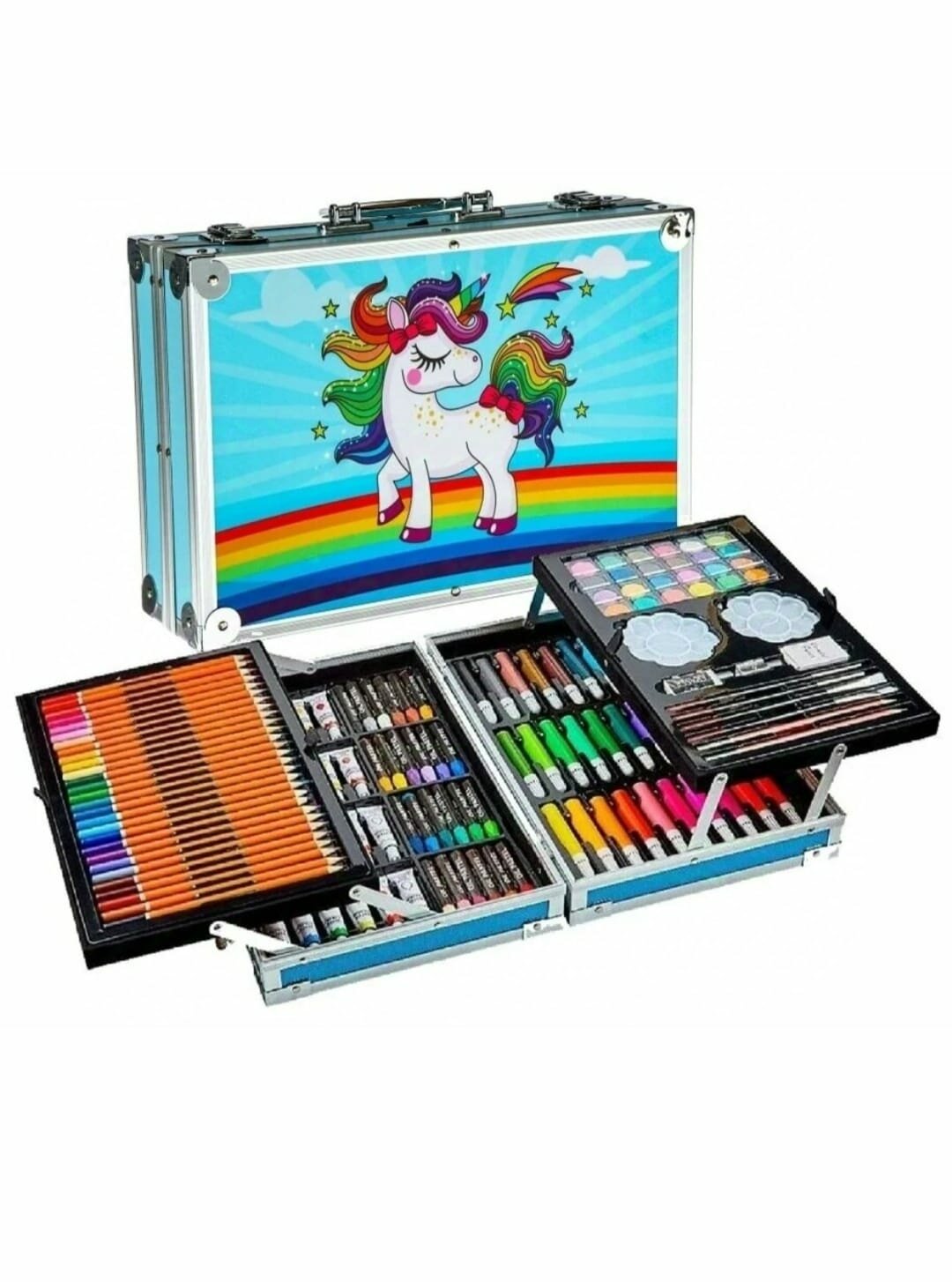 Купить Набор для рисования "Чемодан творчества" с красками, в алюминиевом чемоданчике, 145 предметов, голубой пони