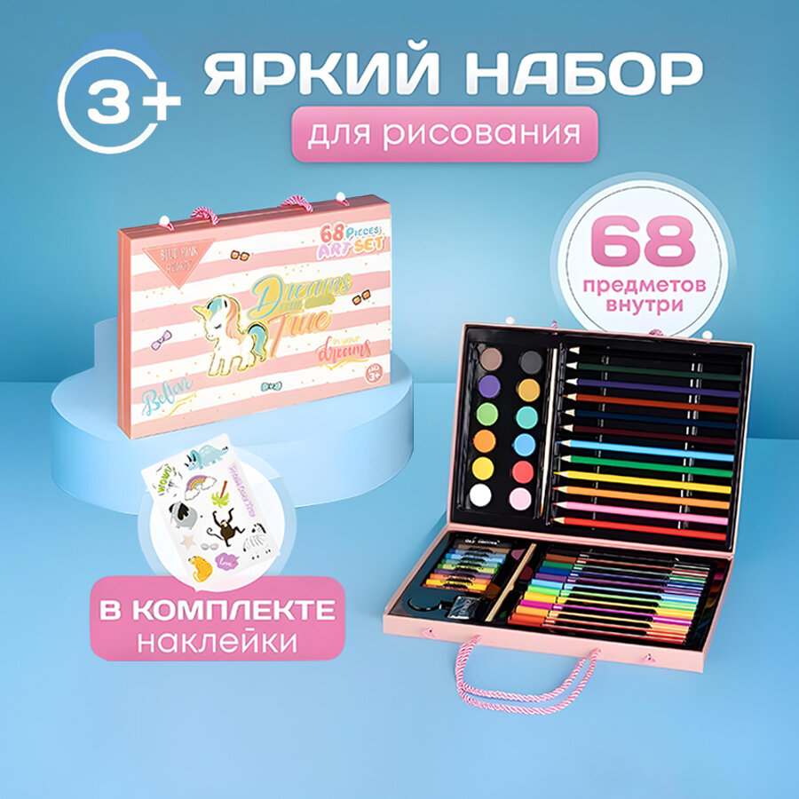 Набор для рисования и творчества в ярком чемодане BluePink Hearts, 68 предметов, розовый интересное: