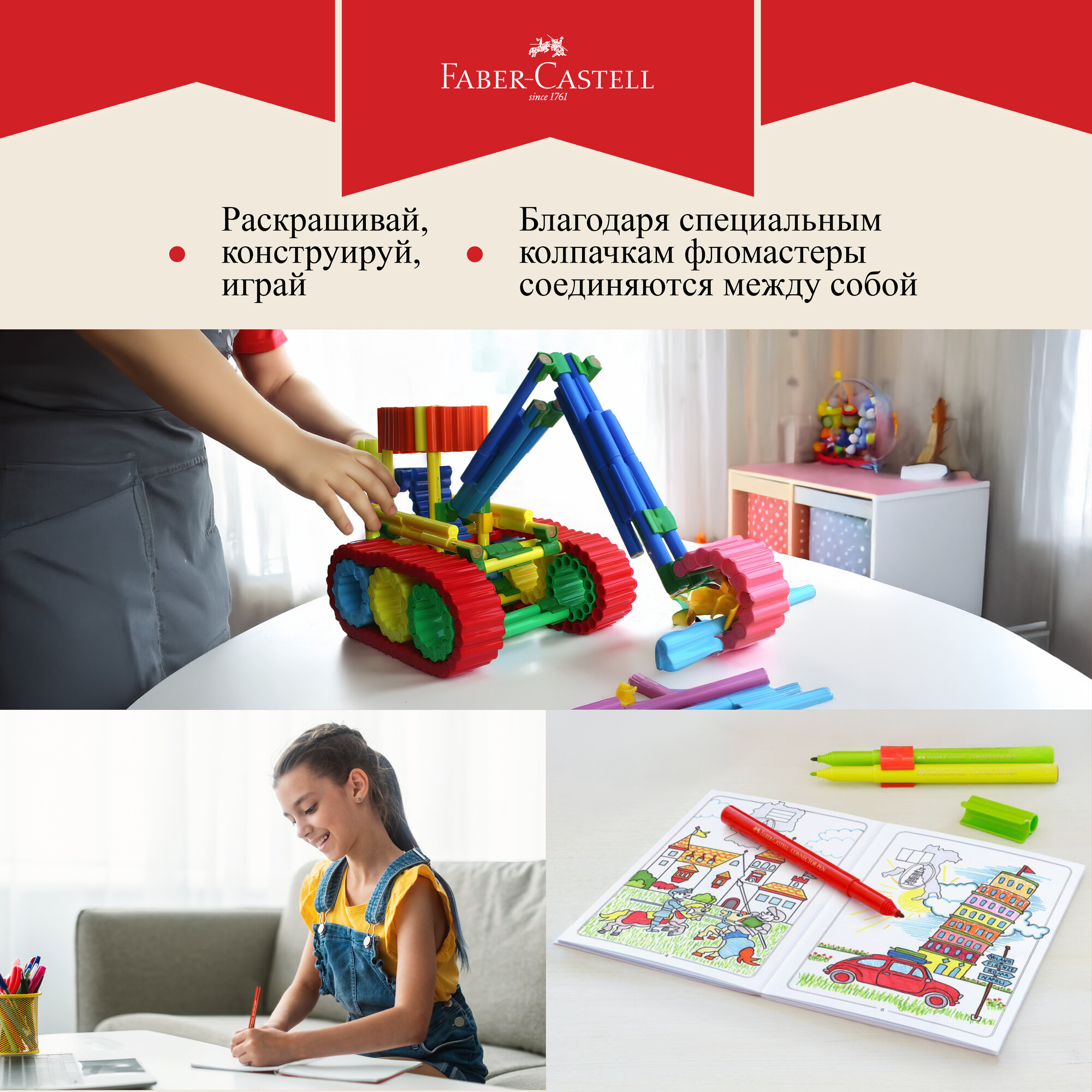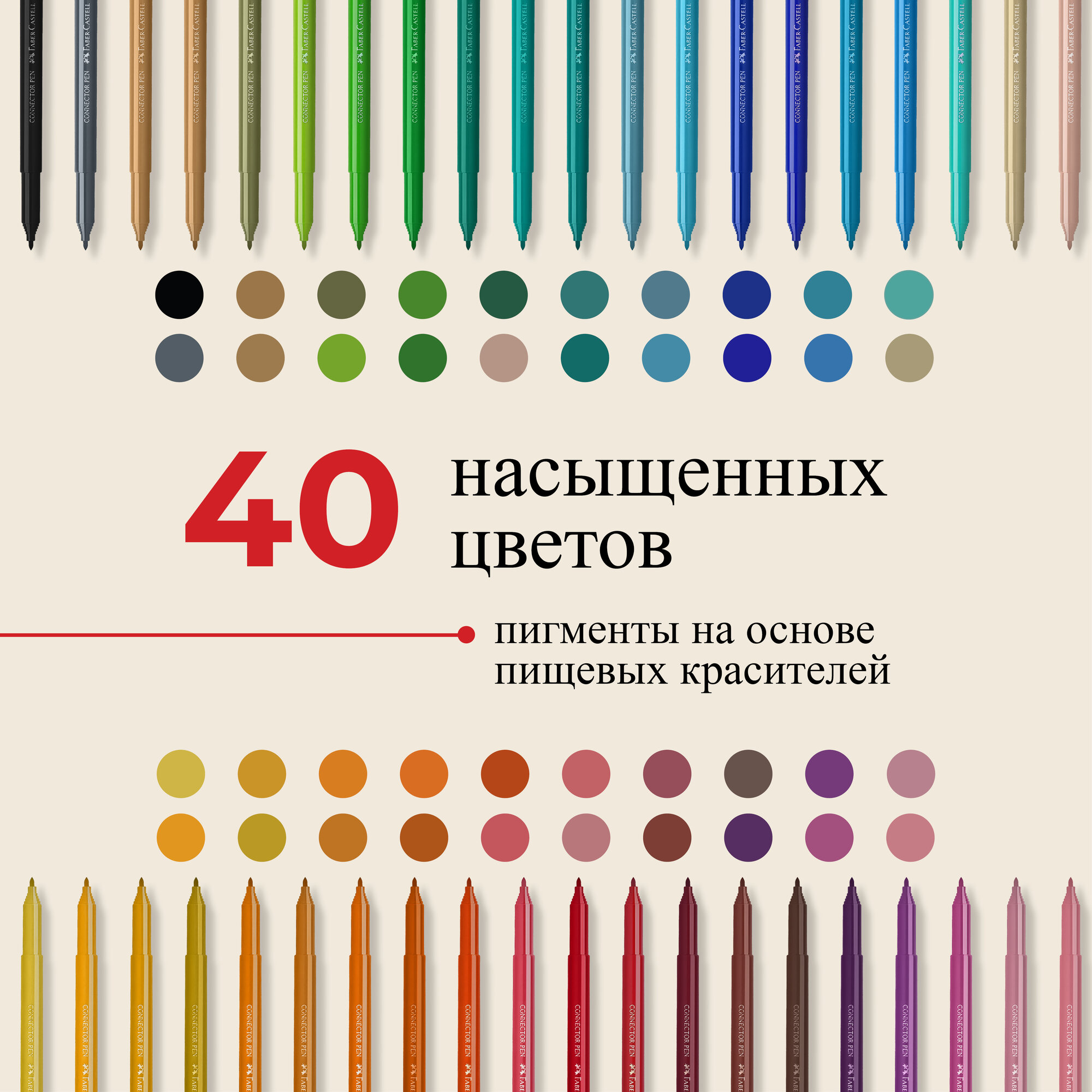 Купить Набор для рисования Faber-Castell "Connector" 40 фломастеров+6 клипс+паспорт раскраск.