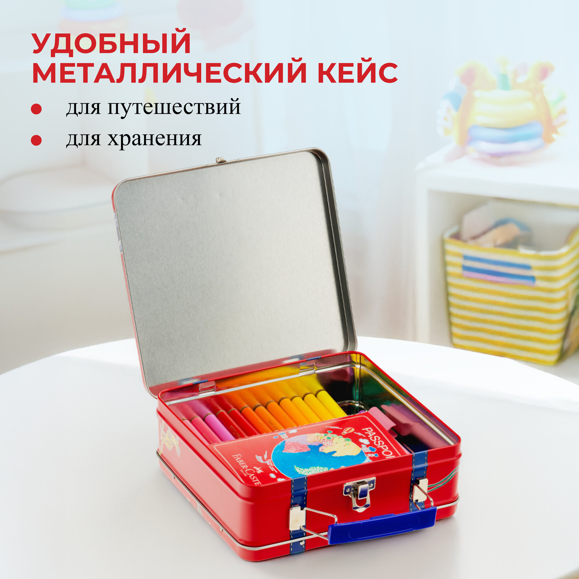 Комплект 2 шт, Набор для рисования Faber-Castell "Connector" 40 фломастеров+6 клипс+паспорт раскраск., метал.
