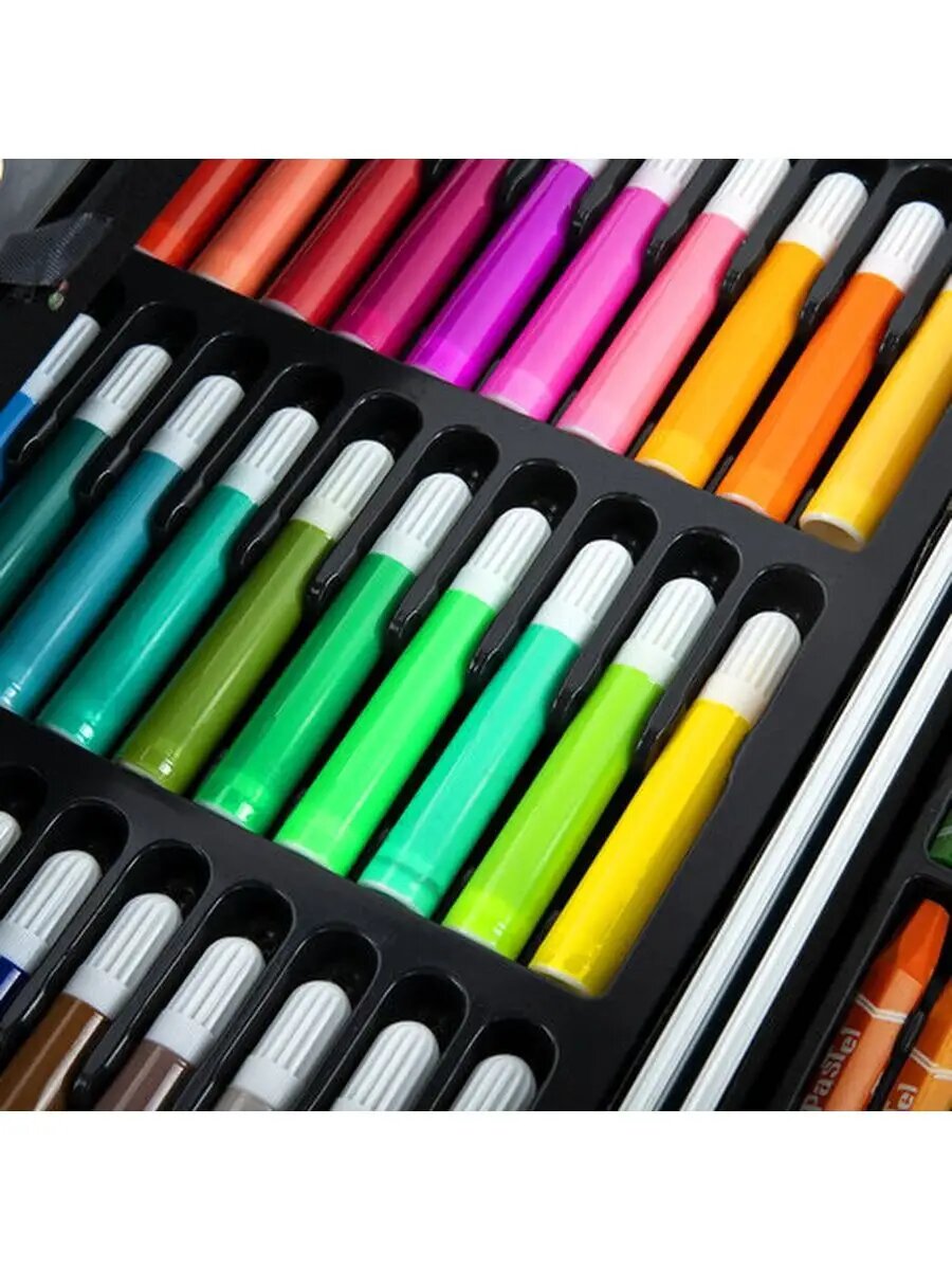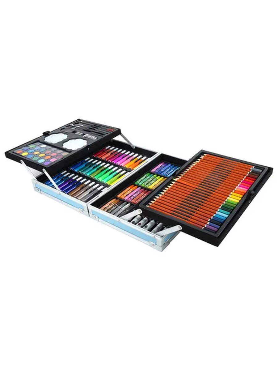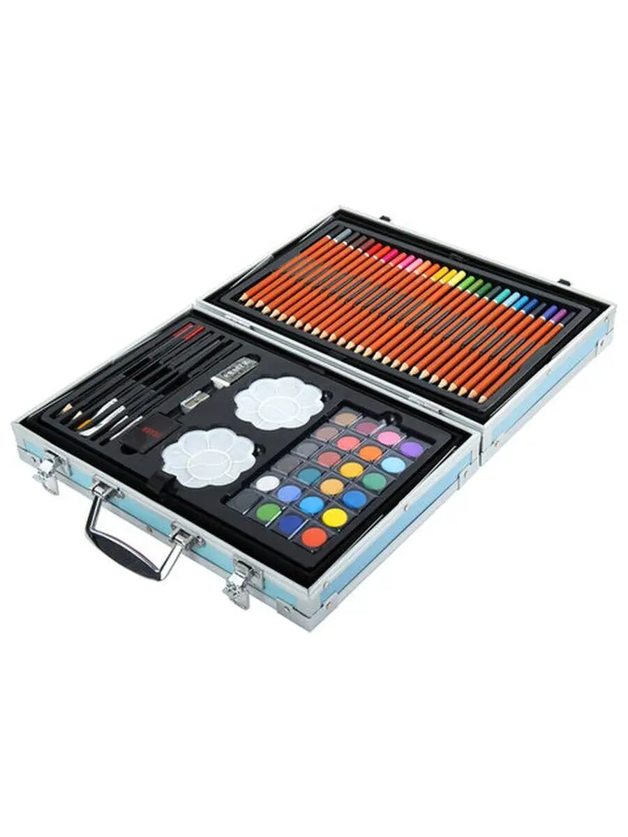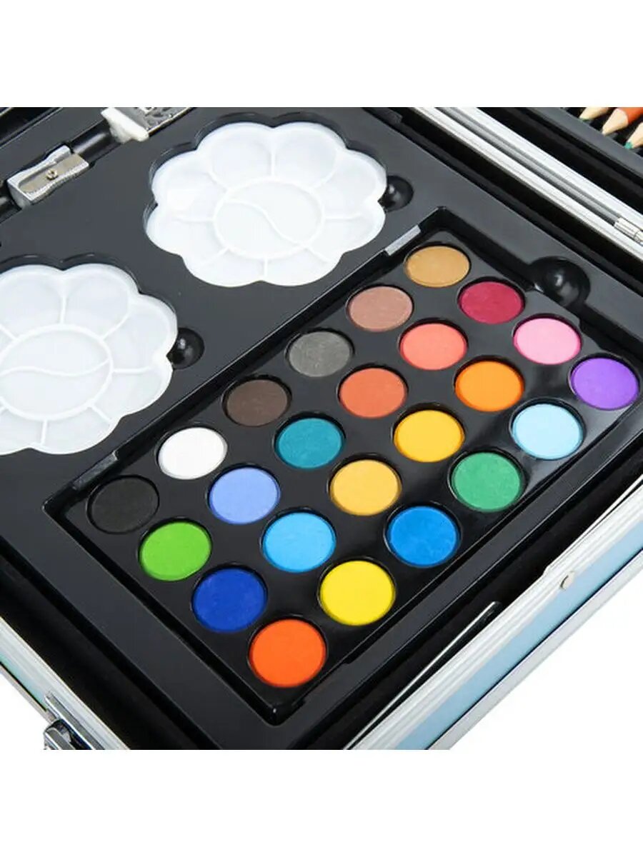 | Состав набора | альбом / карандаши / кисточка / краска / ластик / мольберт / палитра / пастель / точилка / фломастеры |