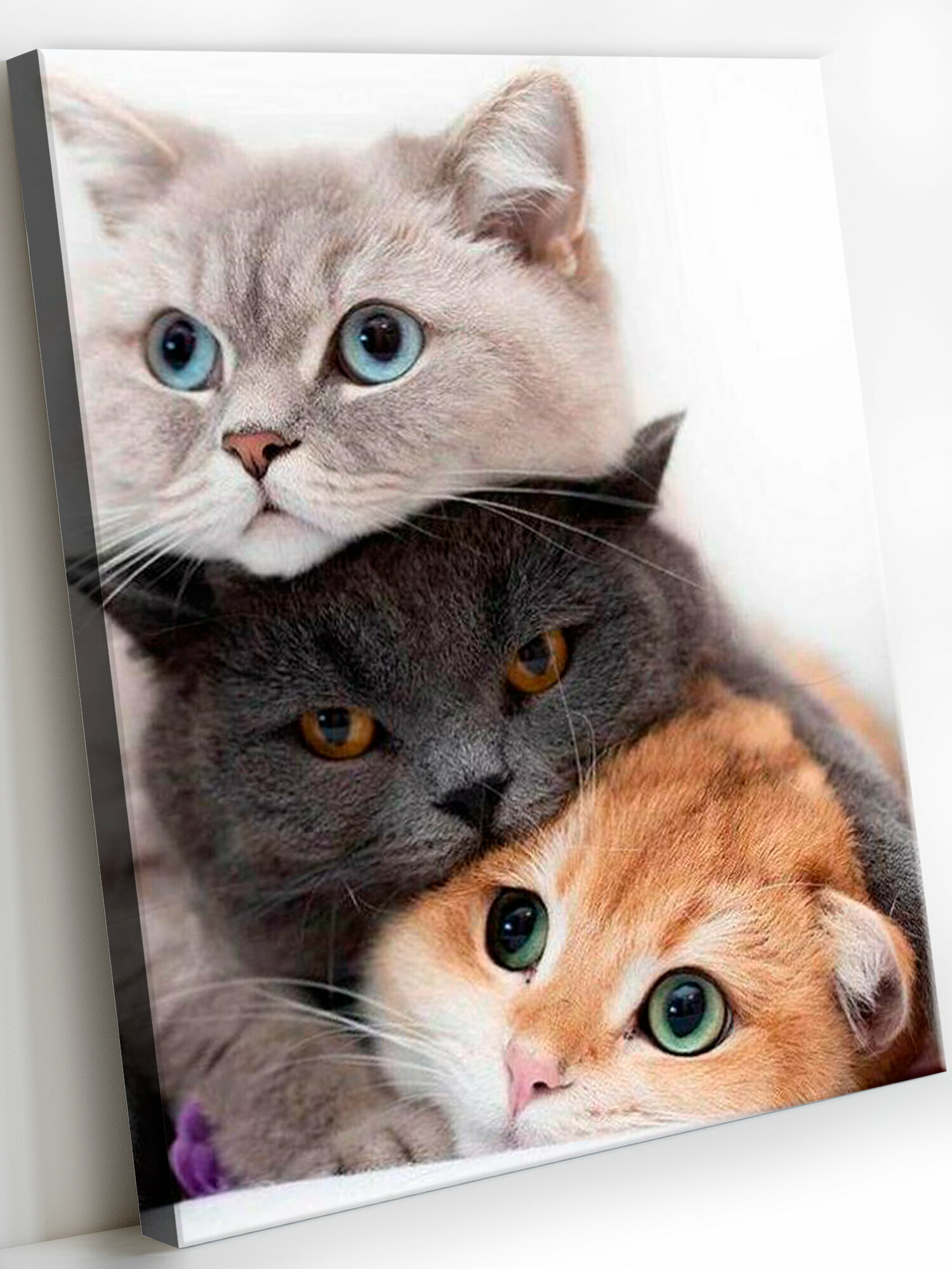 Купить Алмазная мозаика на подрамнике 40х50 см "Кошачья любовь". Холст на подрамнике. Алмазная вышивка. Картина стразами