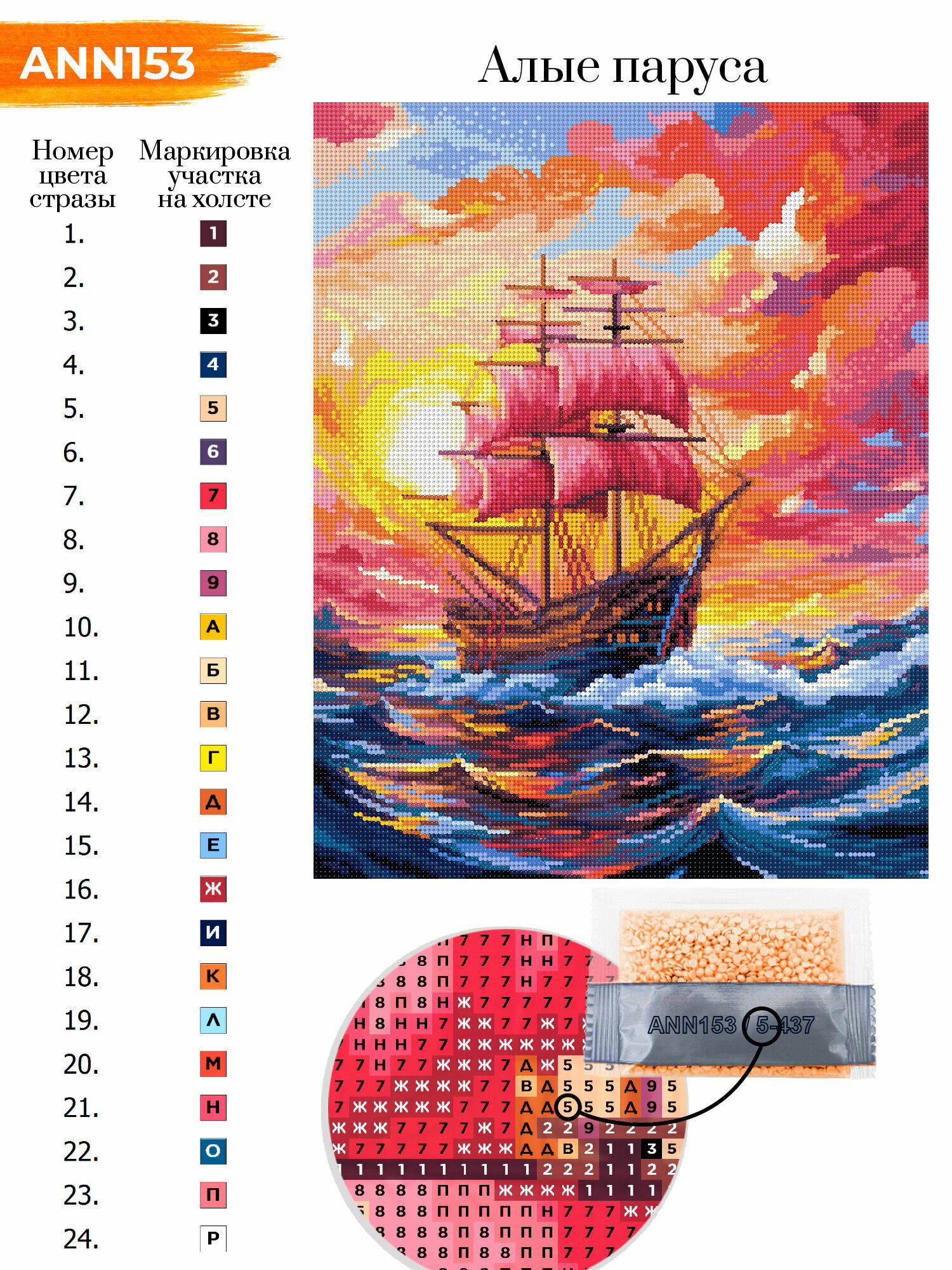 СохранитьАлмазная мозаика на деревянном подрамнике 40х50 см. "Алые паруса" Алмазная вышивка. Картина стразами интересное: