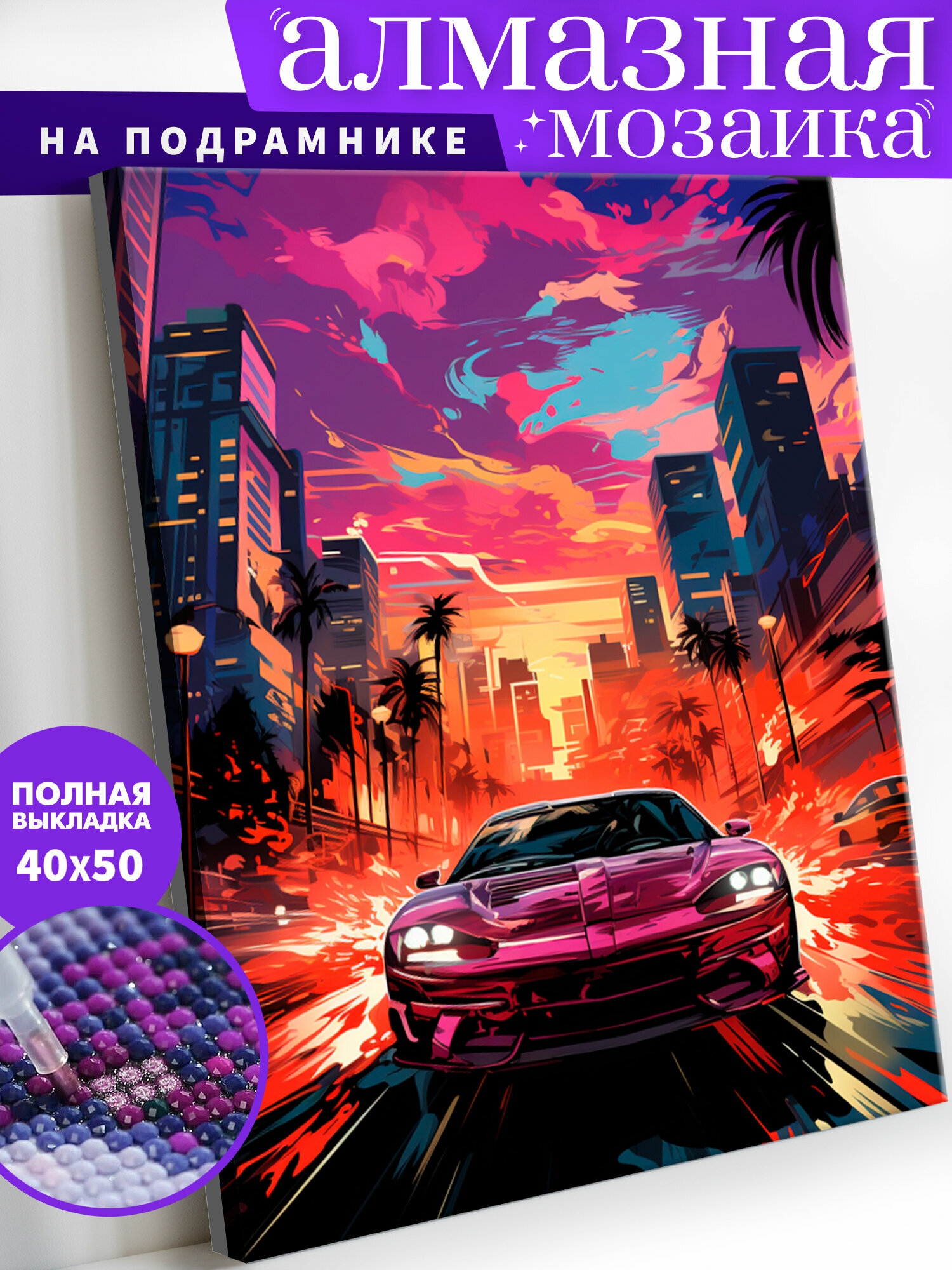 СохранитьАлмазная мозаика на деревянном подрамнике 40х50 см. "Городской дрифт" Алмазная вышивка. Картина стразами интересное: