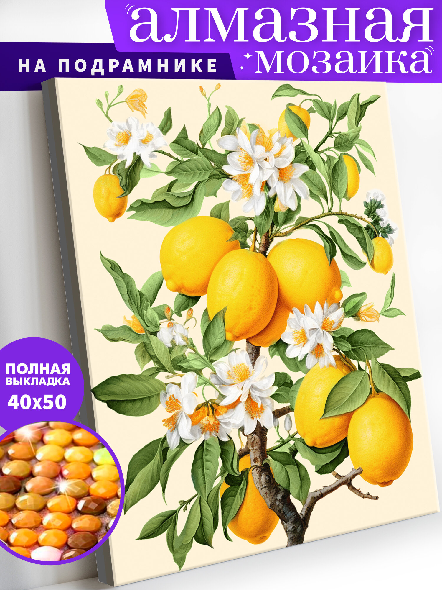 Купить Алмазная мозаика на подрамнике 40х50 см "Лимоны". Алмазная вышивка. Картина стразами