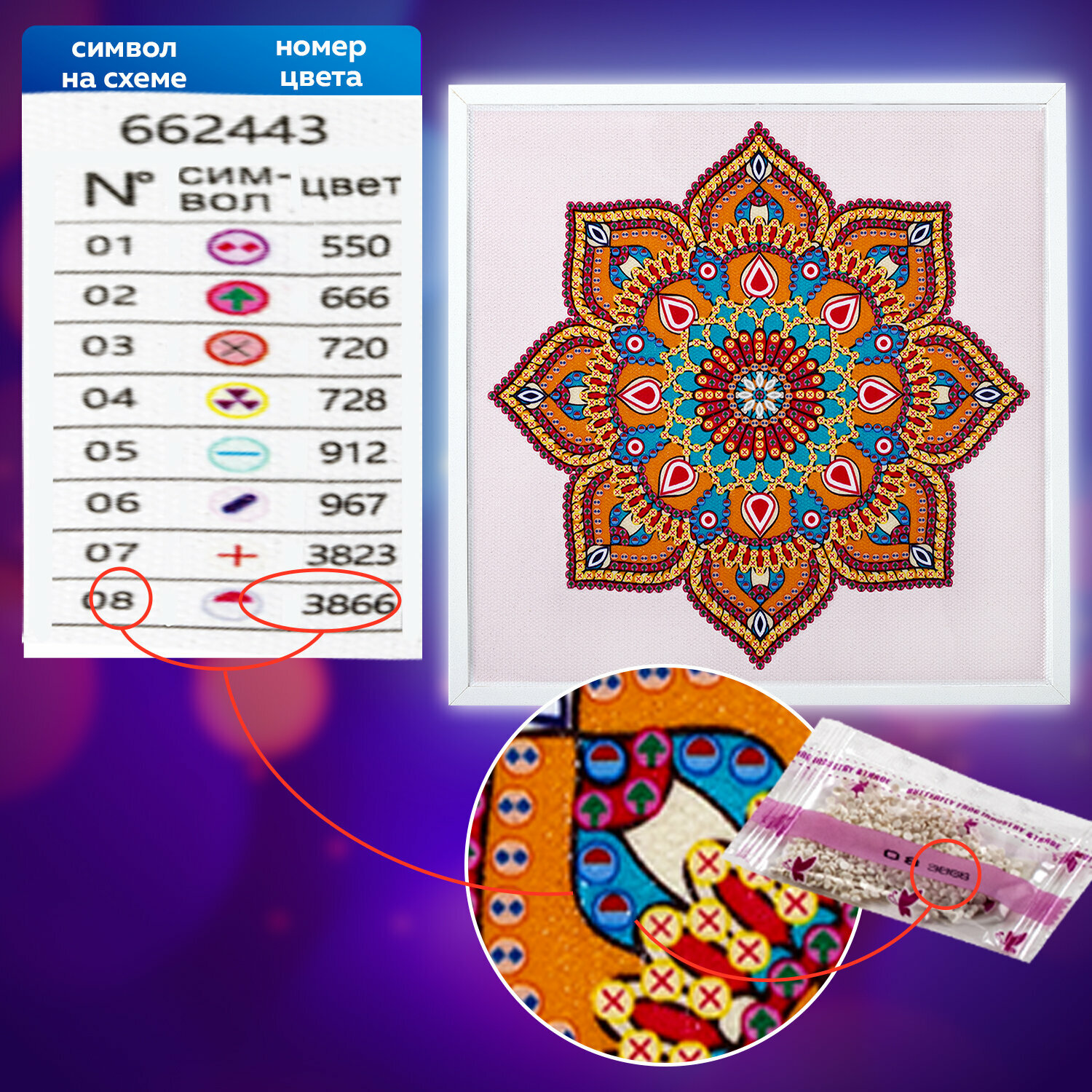 | Особенности | лоток для страз / пинцет / подрамник / с цифрами / стилус / холст / цветная схема / ювелирная огранка |