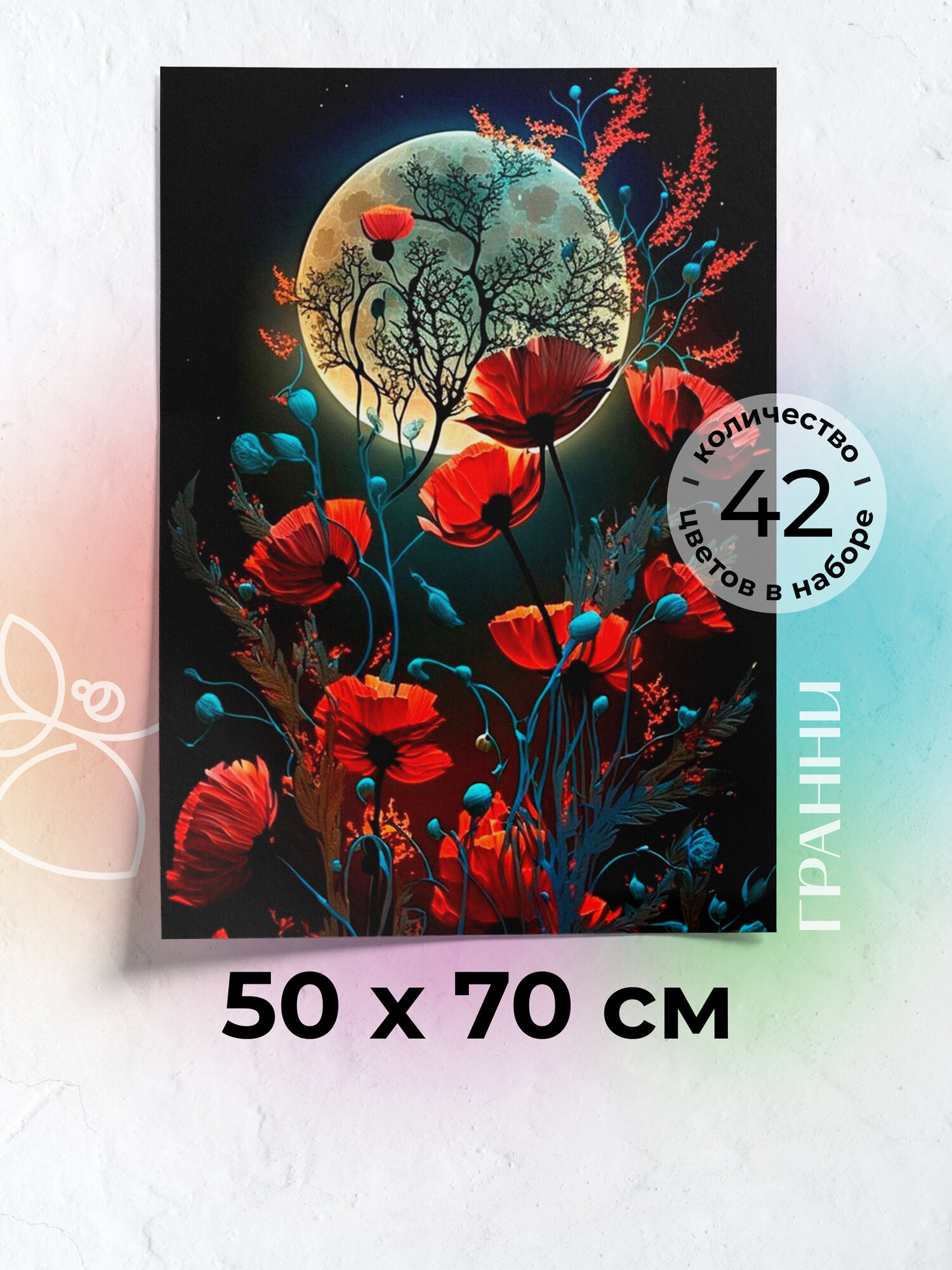 Алмазная мозаика Гранни «Магия маков в полнолуние» (70х50 см, полная выкладка, квадратные стразы) интересное: