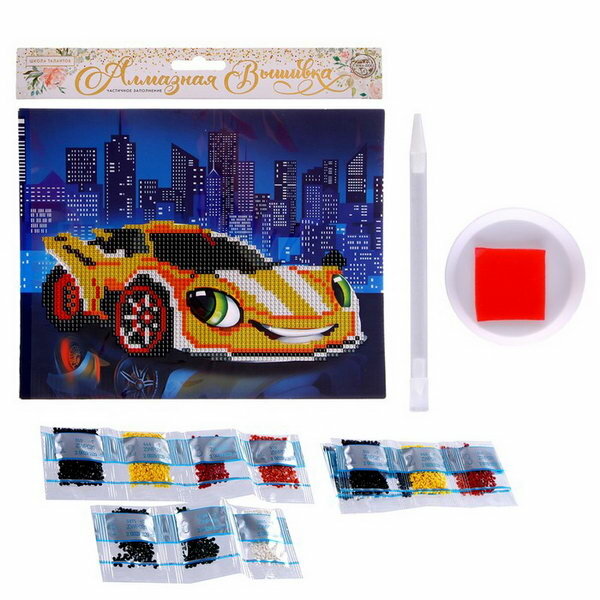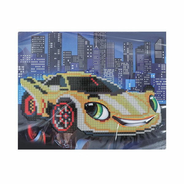 Алмазная мозаика с лотком для страз "Желтая Тачка", 20х25 см, 8 цветов