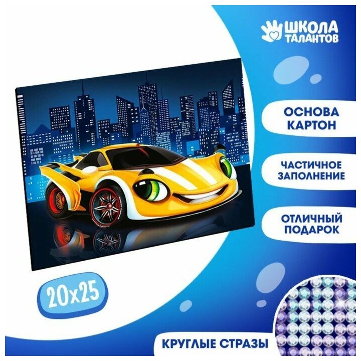 Купить Алмазная мозаика с частичным заполнением для детей «Жёлтая тачка», 20 х 25 см