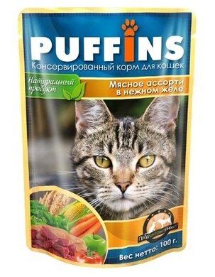 Купить Puffins консерв. 100г для кошек в желе Мясное ассорти кус-ки (дой-пак) 124 (2 шт)