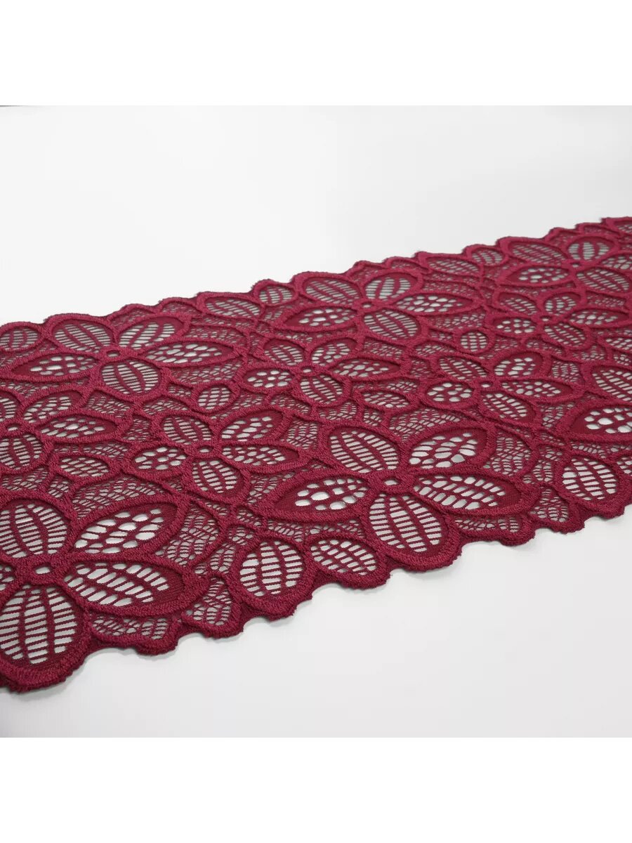 Кружевная эластичная ткань, 180 мм х 2,7±0,5 м, бордовый