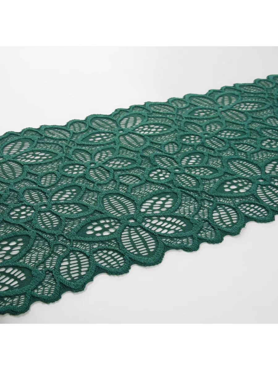 Купить Кружевная эластичная ткань, 180 мм х 2,7±0,5 м, изумрудный