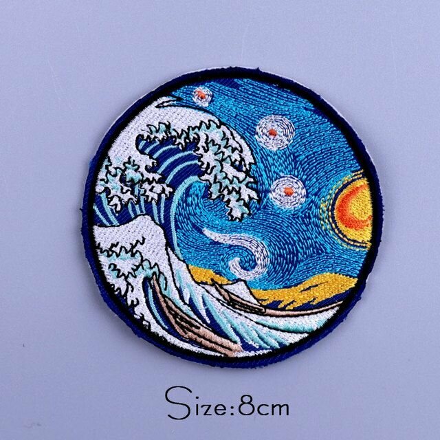 Купить Нашивка шеврон (патч) с липучкой № 114 Ukiyo, Канагава. Солнце с волной 8 см