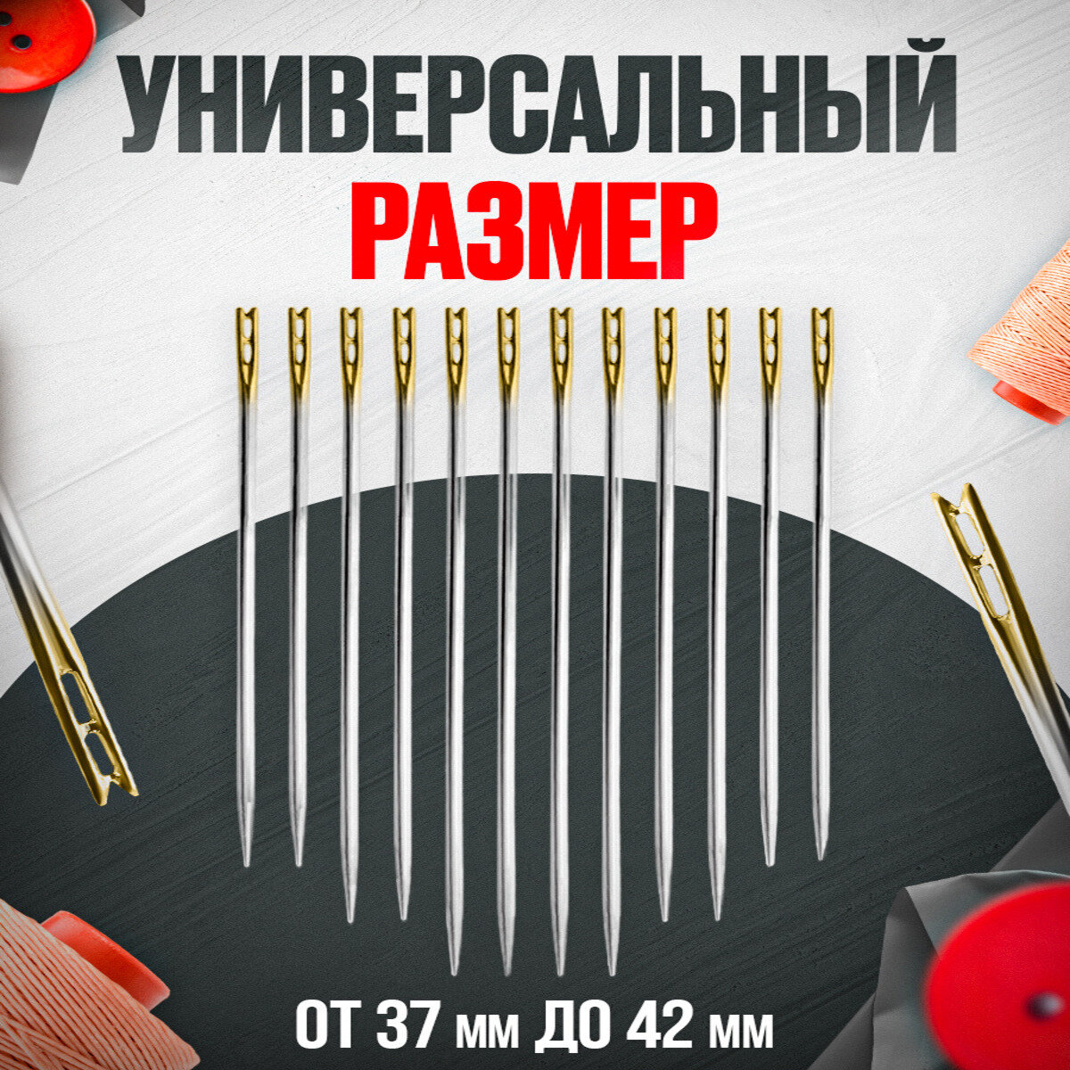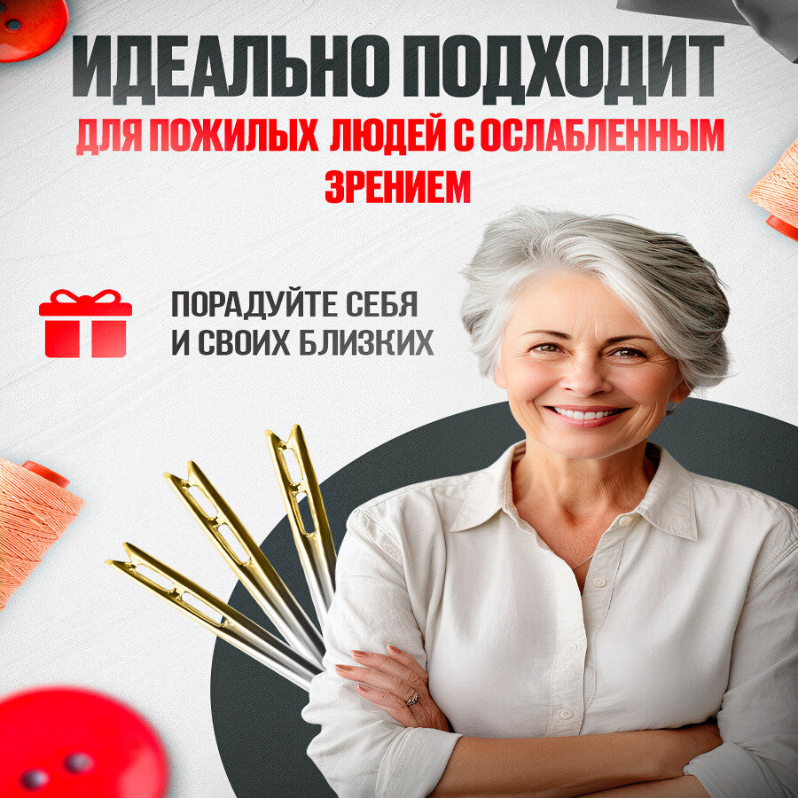 Набор иголок для шитья 50 штук / для слабовидящих с большим и маленьким ушком