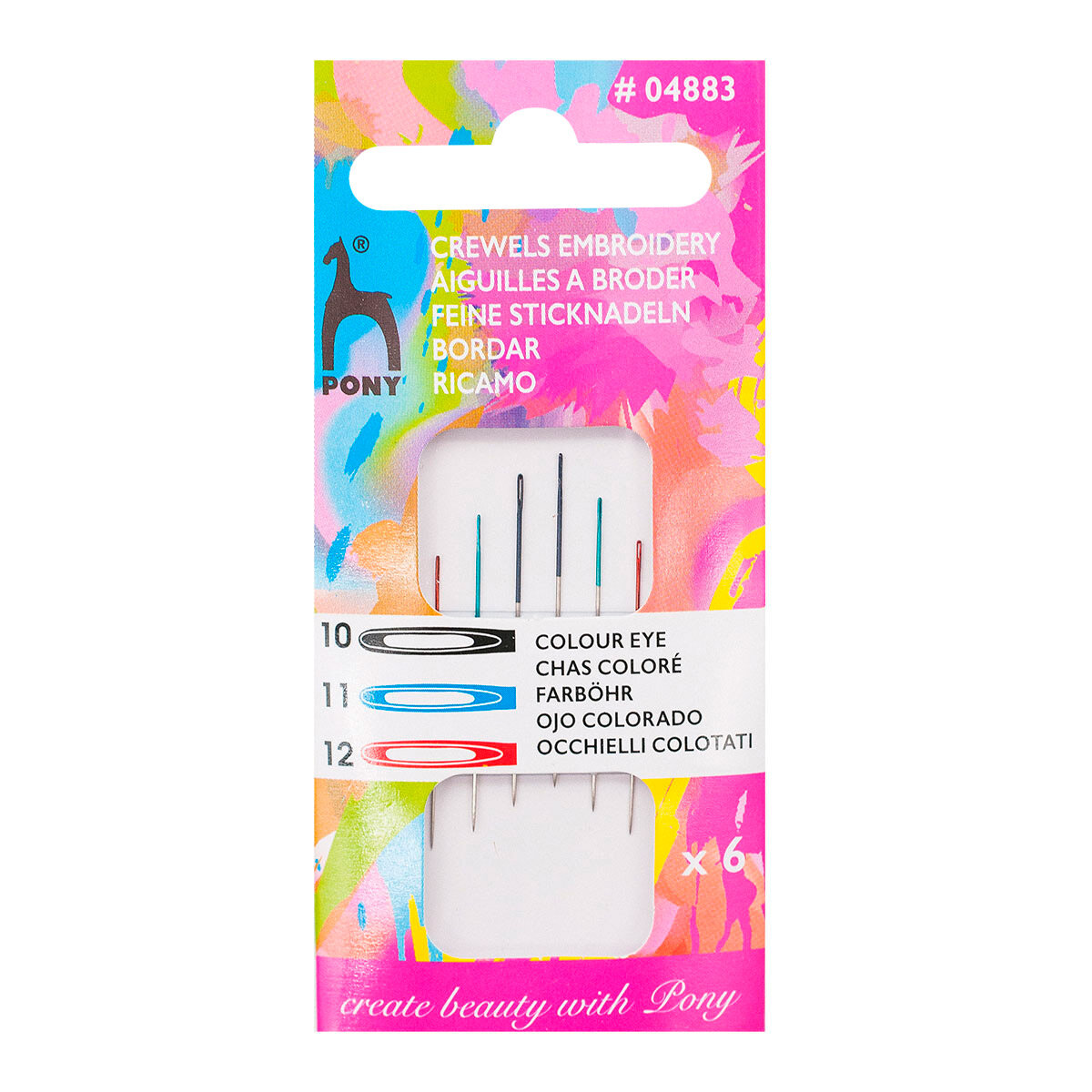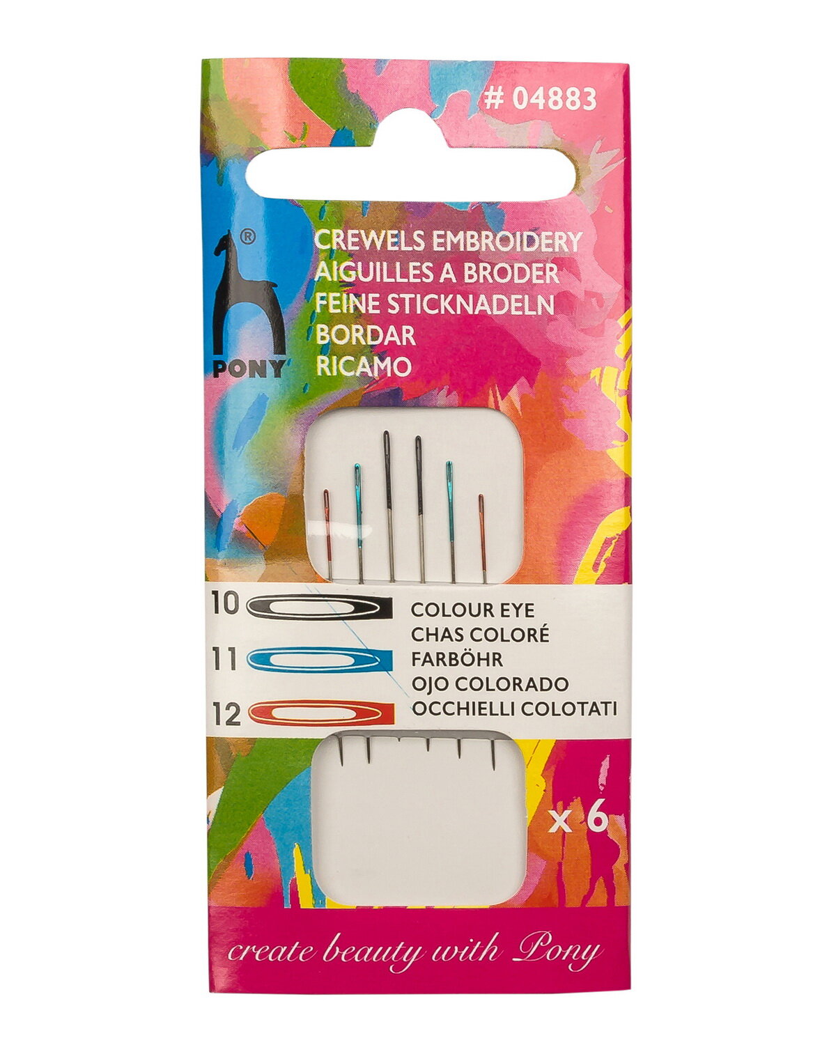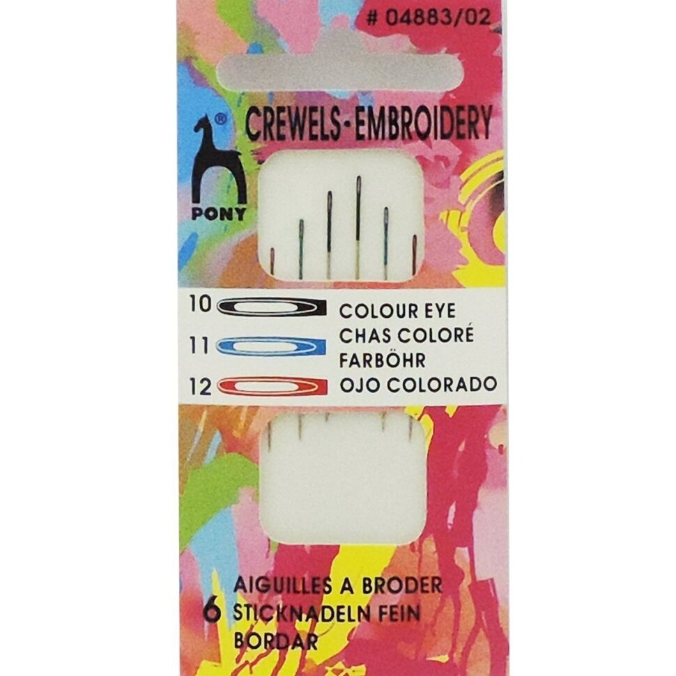 Купить Иголки для шитья и вышивания № 10-12, с цветным ушком, PONY Crewels, 04883, 6 шт