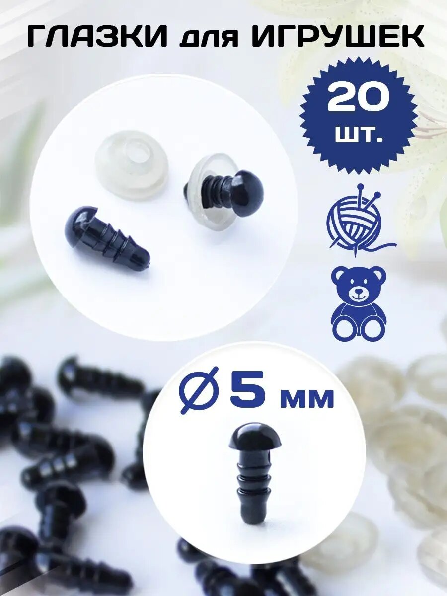 Глазки для игрушек с безопасным креплением 5мм, 20 шт интересное: