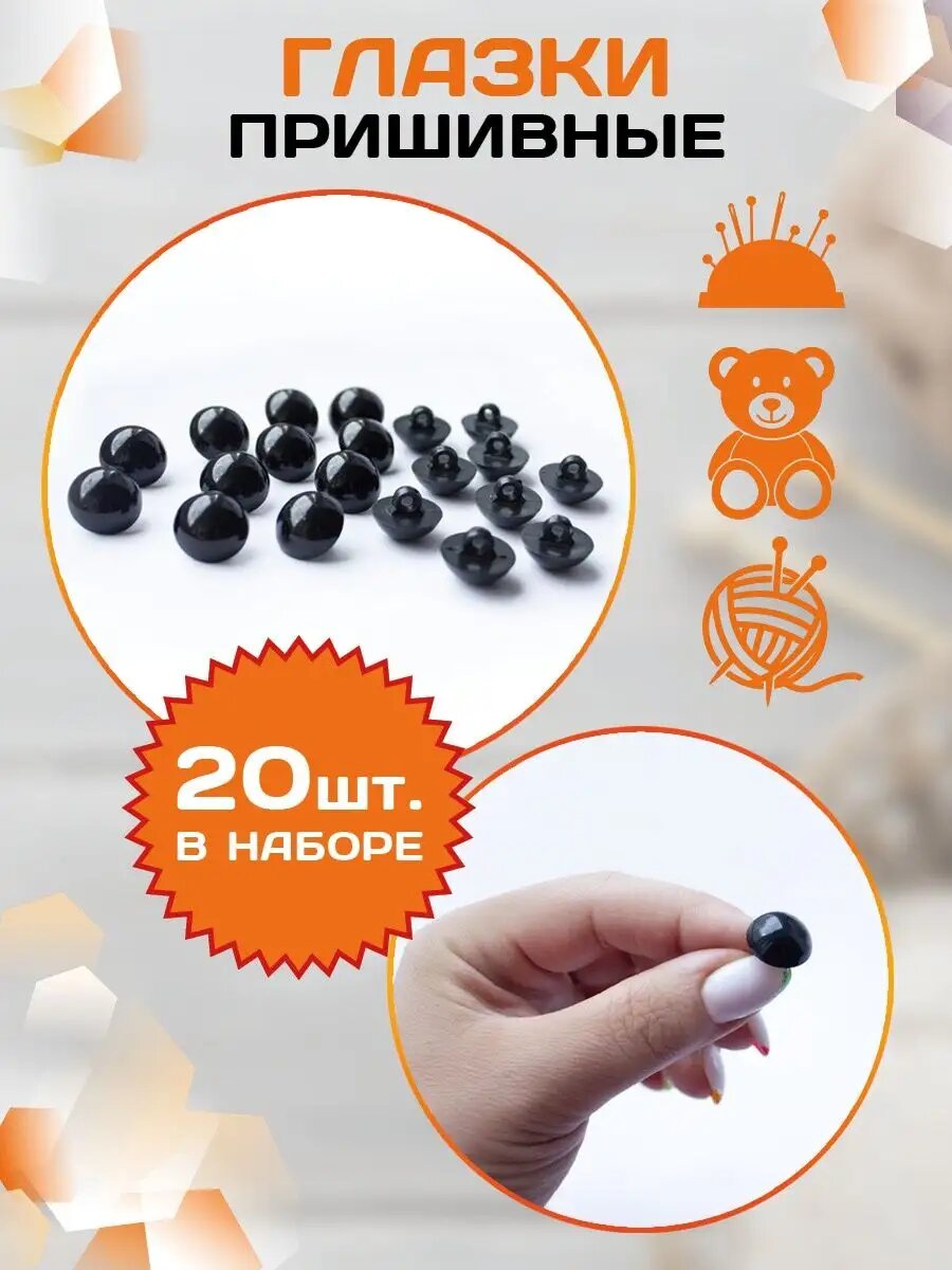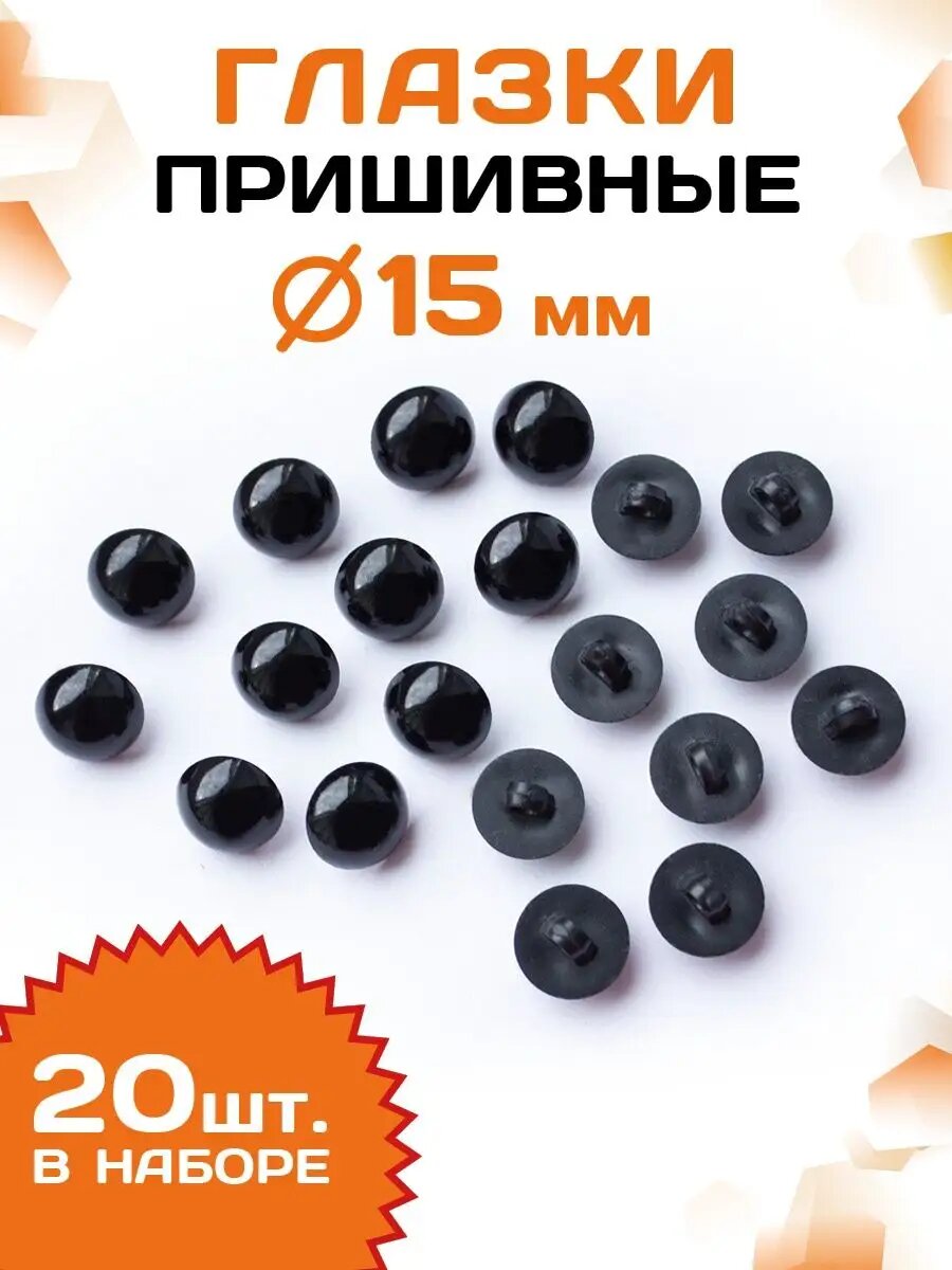 | Комплектация | Пластиковые пришивные глазки черного цвета - 20 шт. |