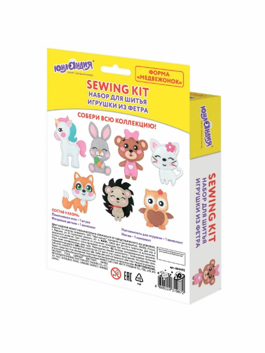 Набор для творчества и рукоделия для шитья игрушки из фетра для девочек / детей Медвежонок, Юнландия интересное: